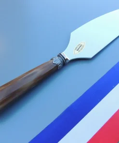 Service à découper, Corne blonde, virole argent vieillit, 29 cm