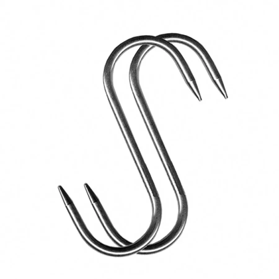 Lot de 10 crochets à viande pour fumoir Politec. Conçus en acier inoxydable. Longueur 80 mm.