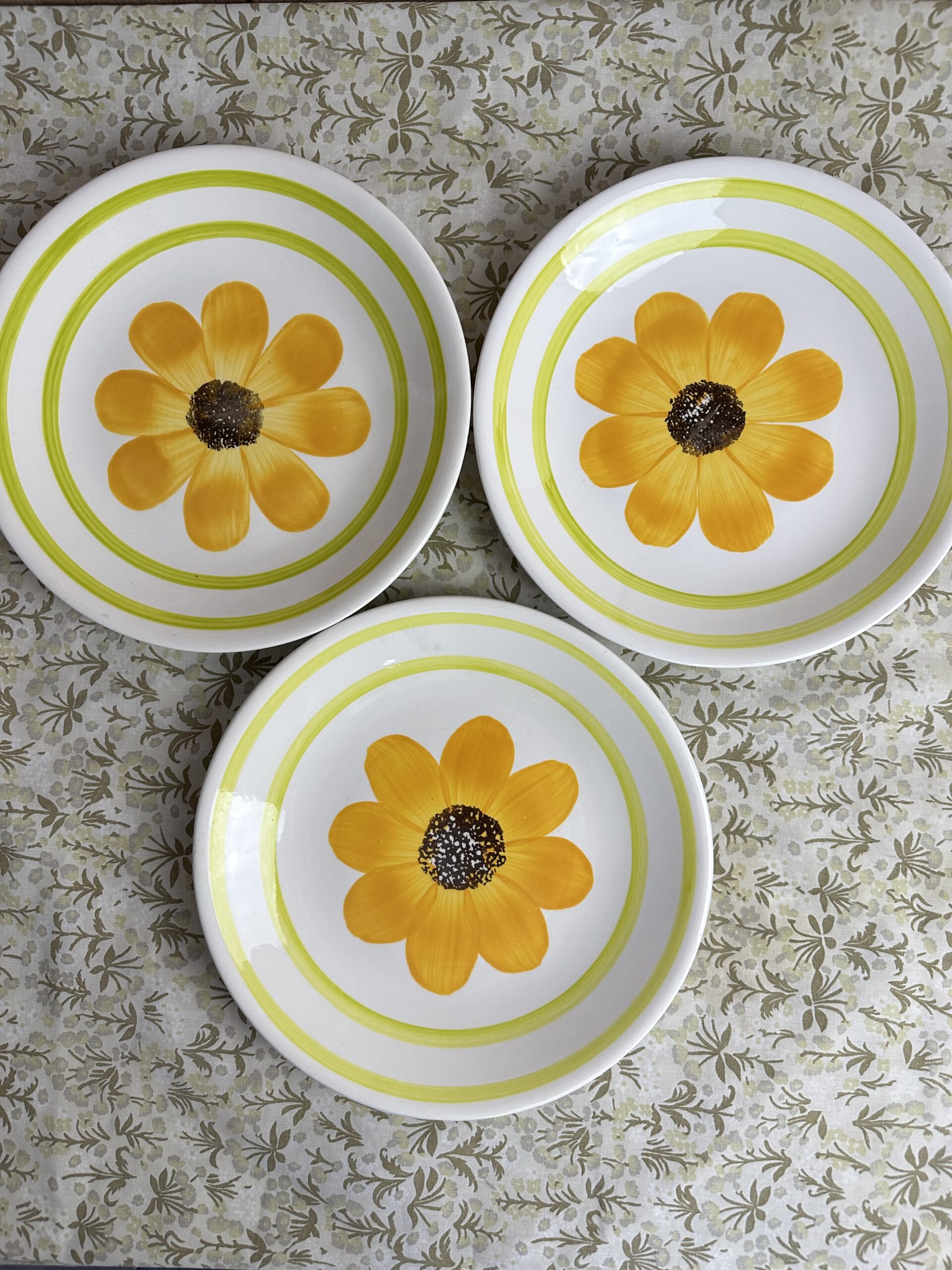 Les assiettes sont estampillées Gien, modèle Alba tournesol. Prêt à craquez pour ce merveilleux modèle ?