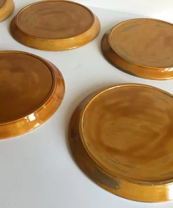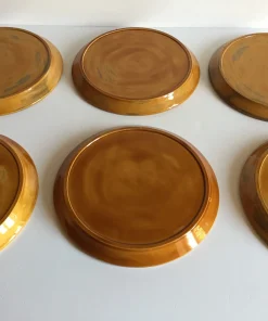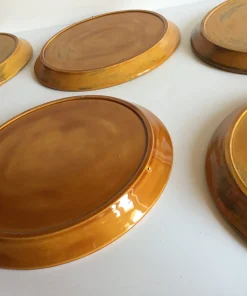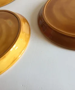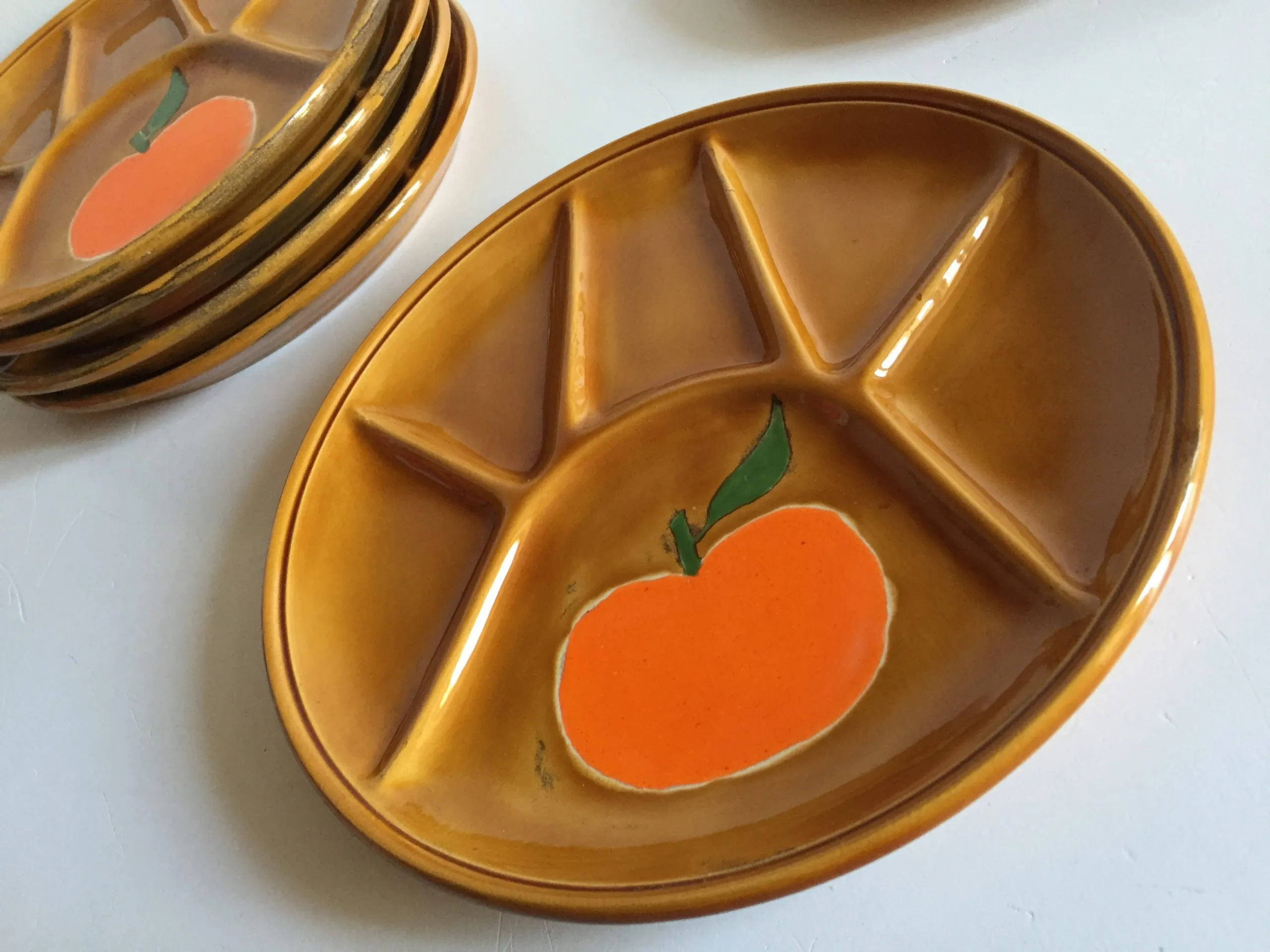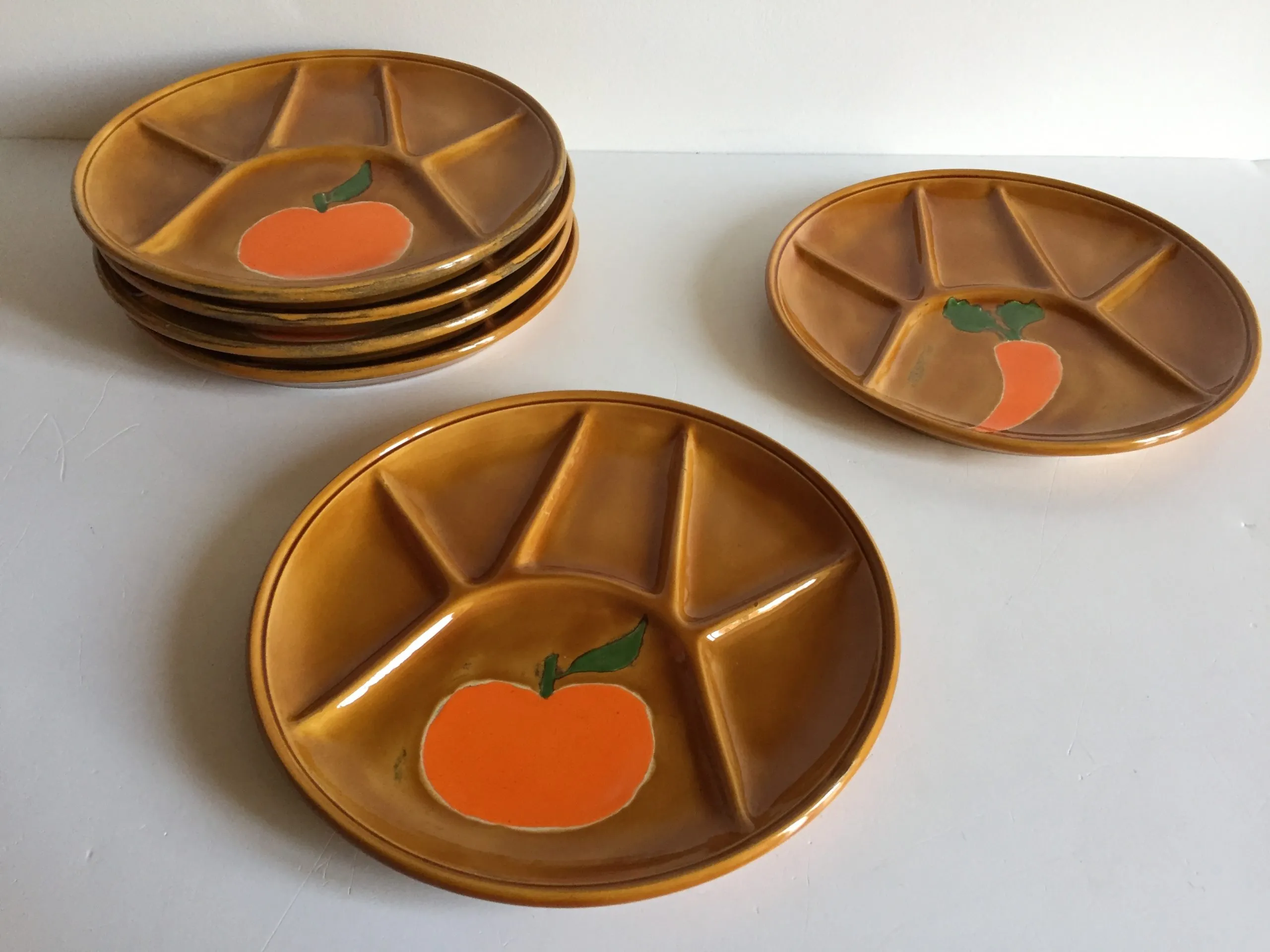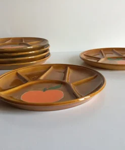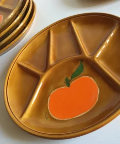 Authentiques et Rares Assiettes compartimentées Vintage, un Ensemble Arts de La Table en Faïence émaillée, Design des Années 70, couleur Caramel et Motifs Oranges, Véritable Objet Déco !