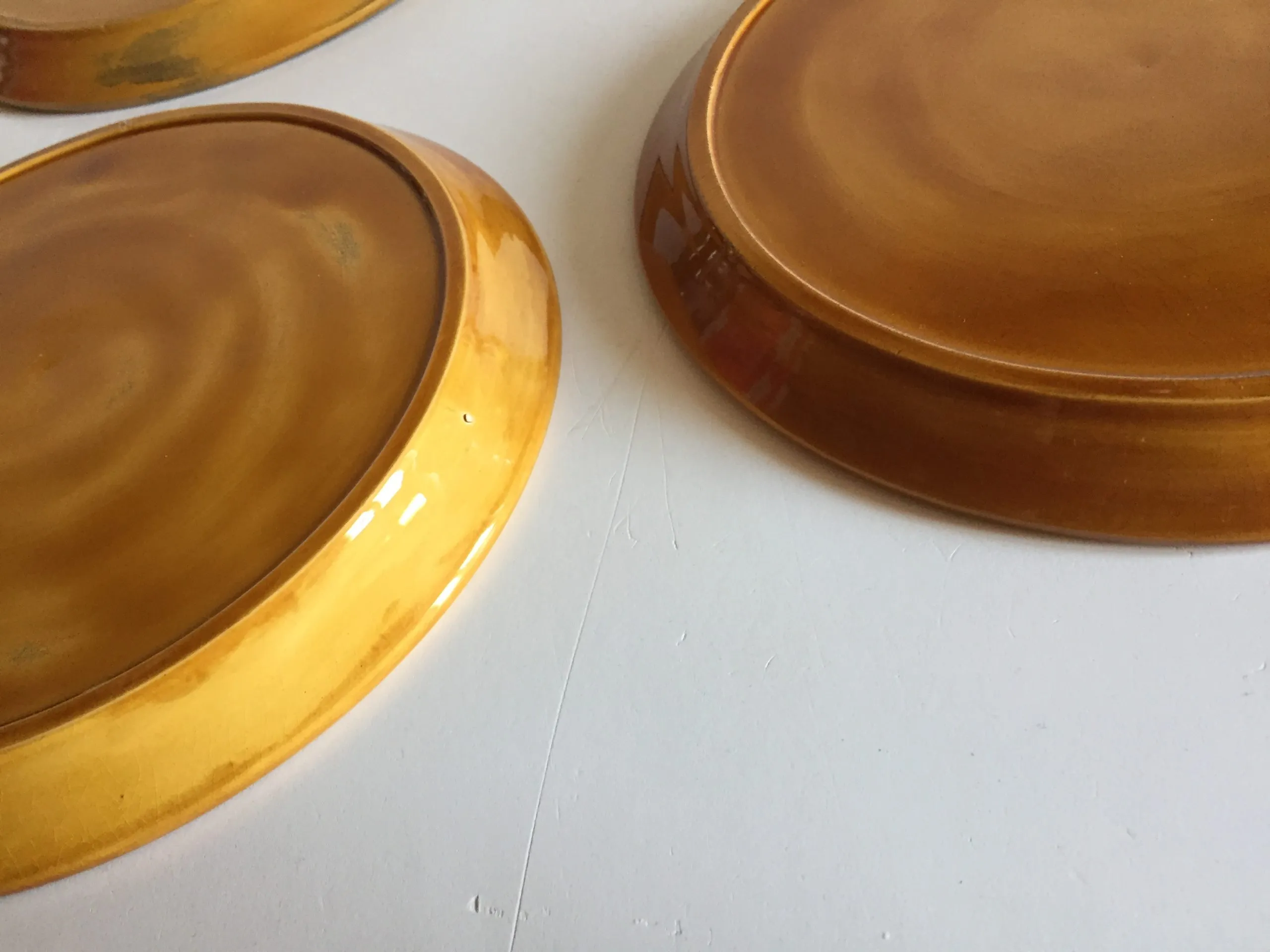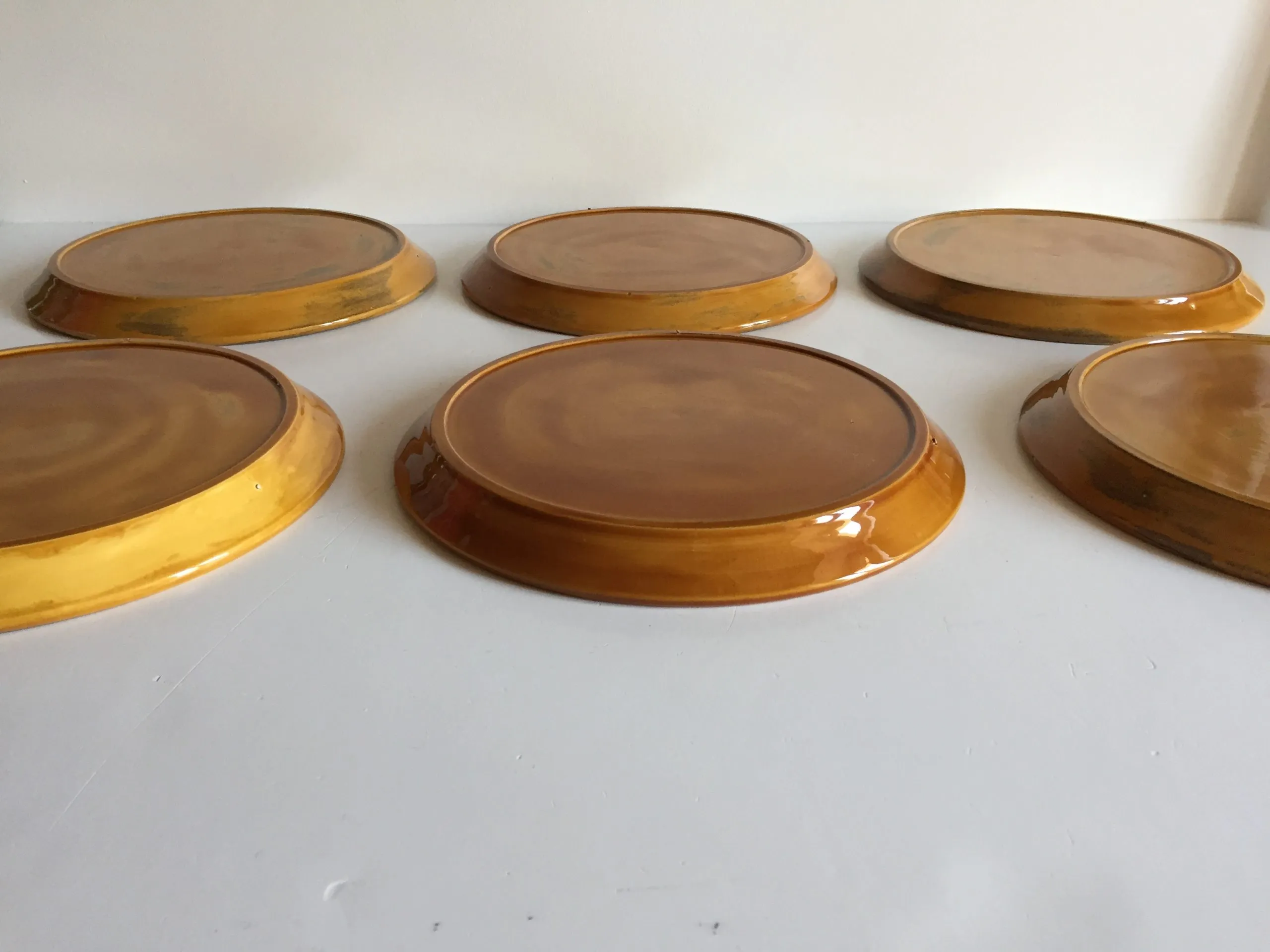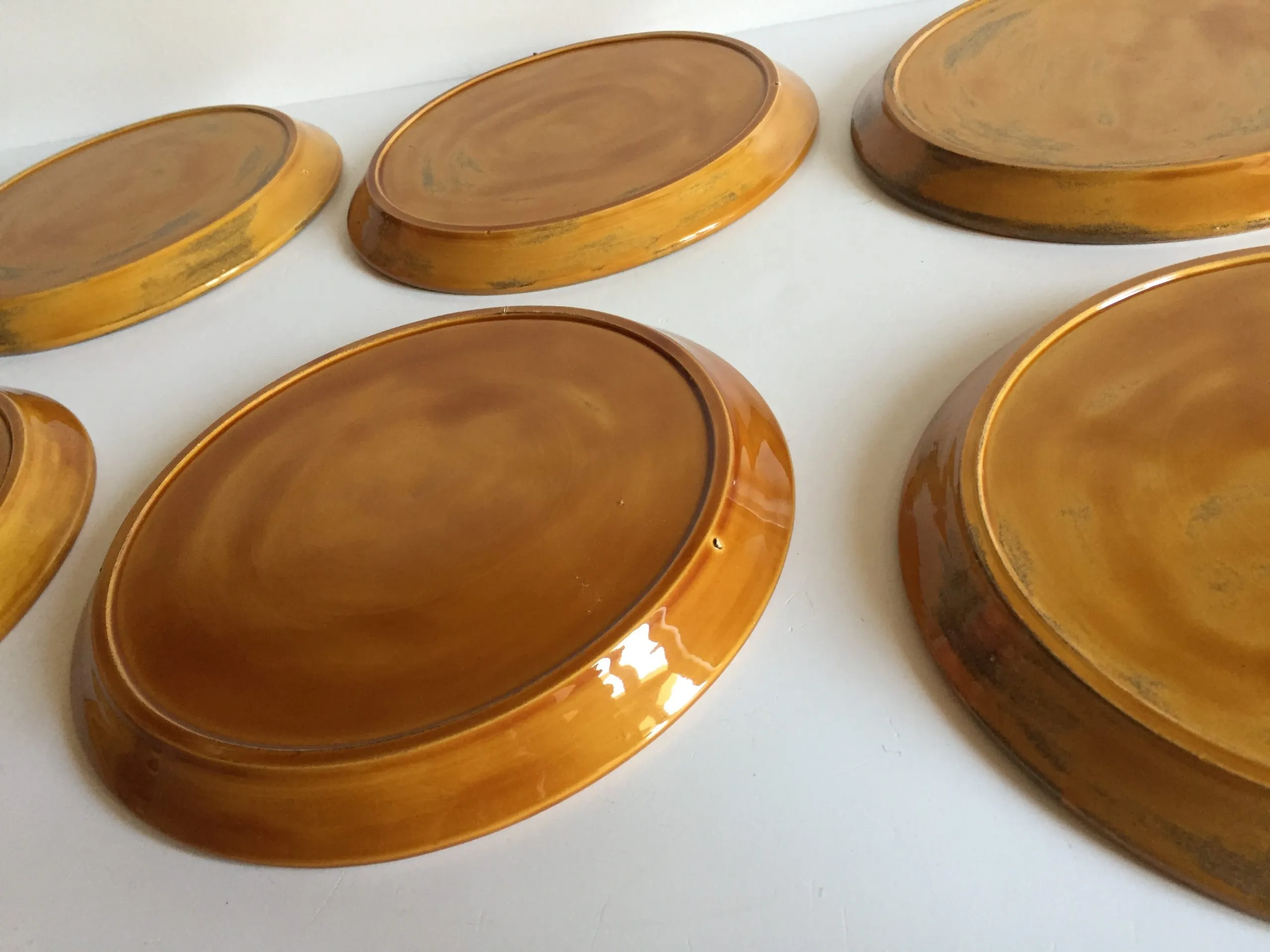 Authentiques et Rares Assiettes compartimentées Vintage, un Ensemble Arts de La Table en Faïence émaillée, Design des Années 70, couleur Caramel et Motifs Oranges, Véritable Objet Déco !