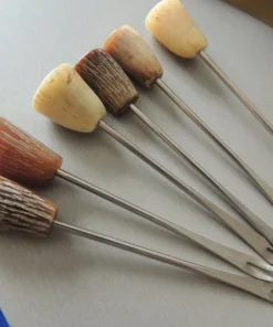 Ces piques à 2 pointes vous permettront de déguster vos escargots et vos bigorneaux- ou toutes sorte d’amuses bouches tout en apportant une touche de raffinement à votre table grâce à la matière noble de la corne .