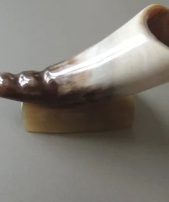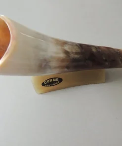 La corne sur son socle sont intégralement en corne véritable de 16cm, ainsi que les extrémités des piques à escargots. cet objet a été réaliser à la main, chaque pièces est unique de part, le travail de l’artisan, que des coloris que offre la corne quand on la travail.