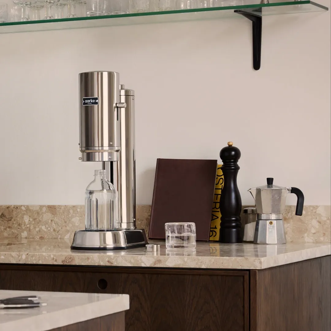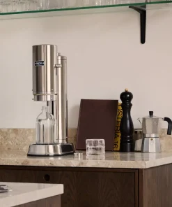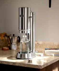 Le Carbonator Pro est une machine à eau pétillante de haute qualité au design contemporain. Il est fabriqué en acier inoxydable et est livré avec une bouteille en verre sophistiquée allant au lave-vaisselle. Le Carbonator Pro permet une manipulation à une main avec sa fonction unique Push-to-Lock. Lorsque la gazéification est terminée, la machine révèle la bouteille en verre.