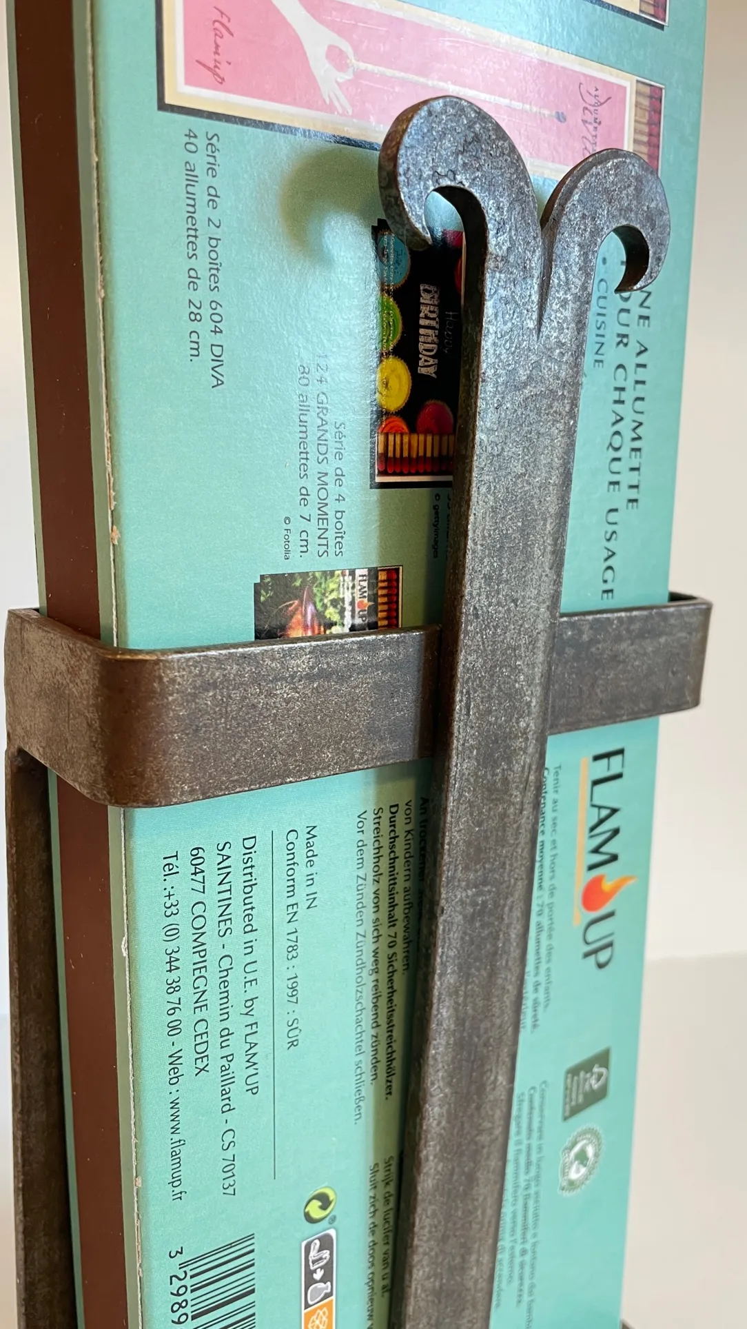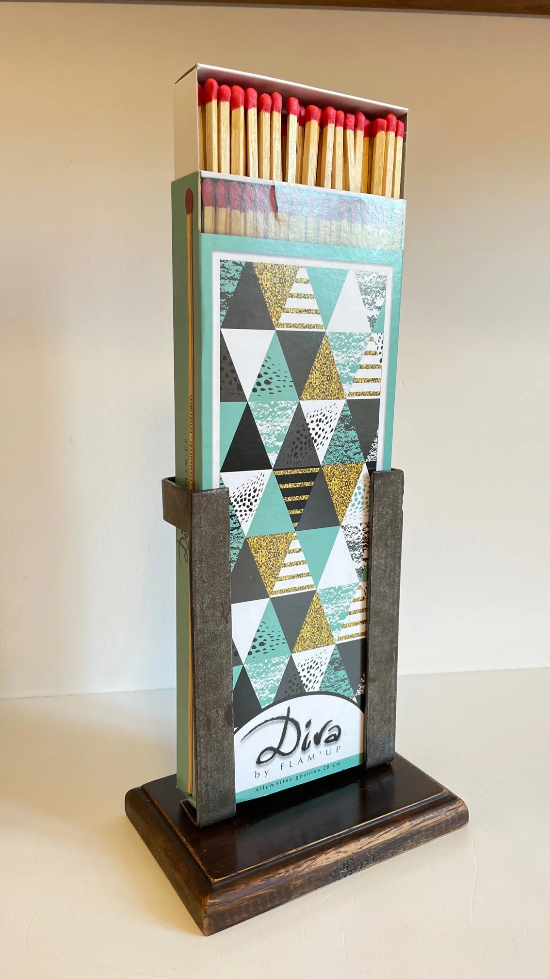 Original et de belle facture, toute en Acier et Bois massif, une pièce de Caractère et bien Utile pour parfaire votre Déco autour de la Cheminée. Boite d’allumette XL non fournie.