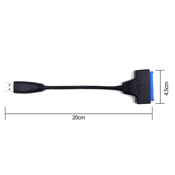 · USB 3.0 ver SATA Adapter Cable pour 2.5 » SSD/HDD Drives: Connectez directement un disque dur SATA 2,5 pouces à votre ordinateur via un adaptateur USB Disque Dur. L’adaptateur mesure 0,2 mètre de long.