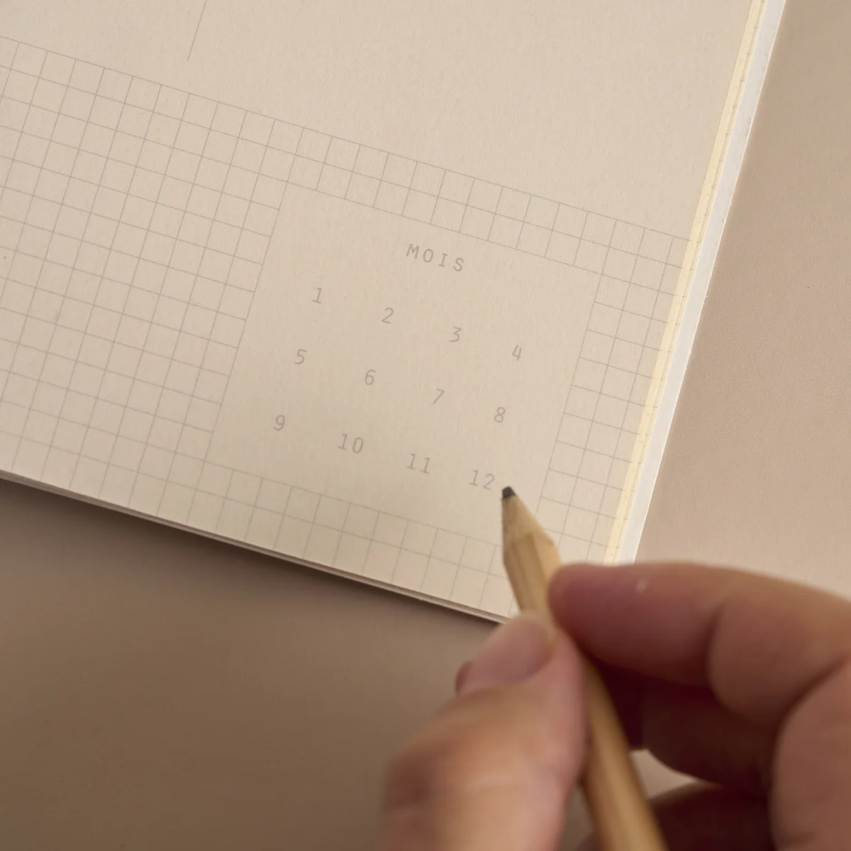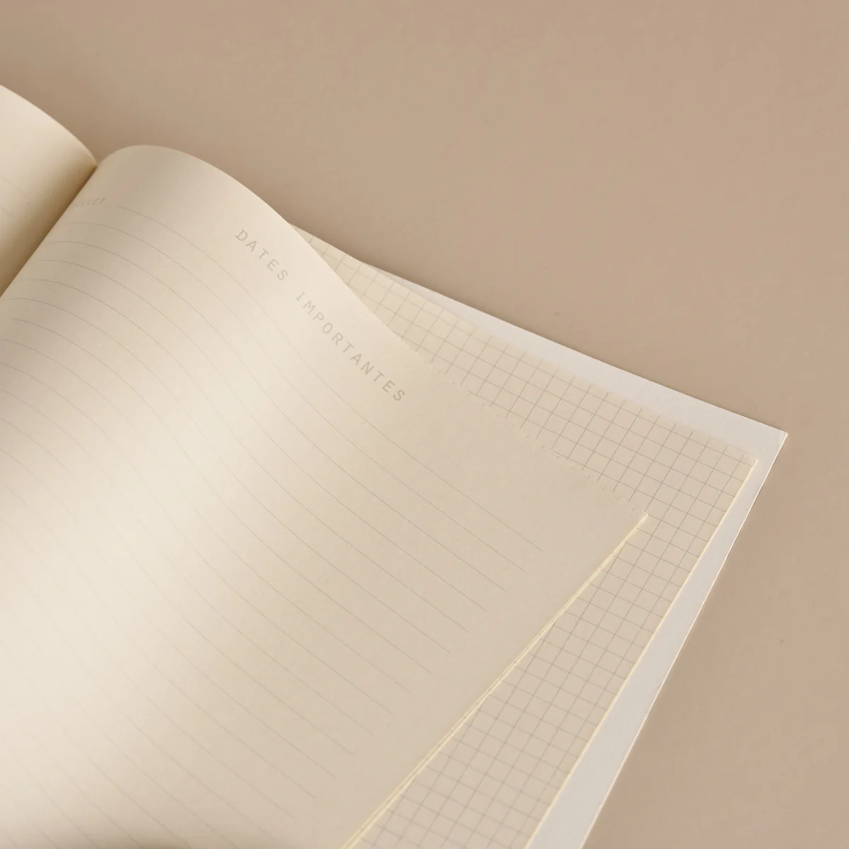 En fin d’agenda, un feuillet vous permet de lister les dates importantes de l’année et des pages à petits carreaux sont disponibles pour noter toutes vos idées.