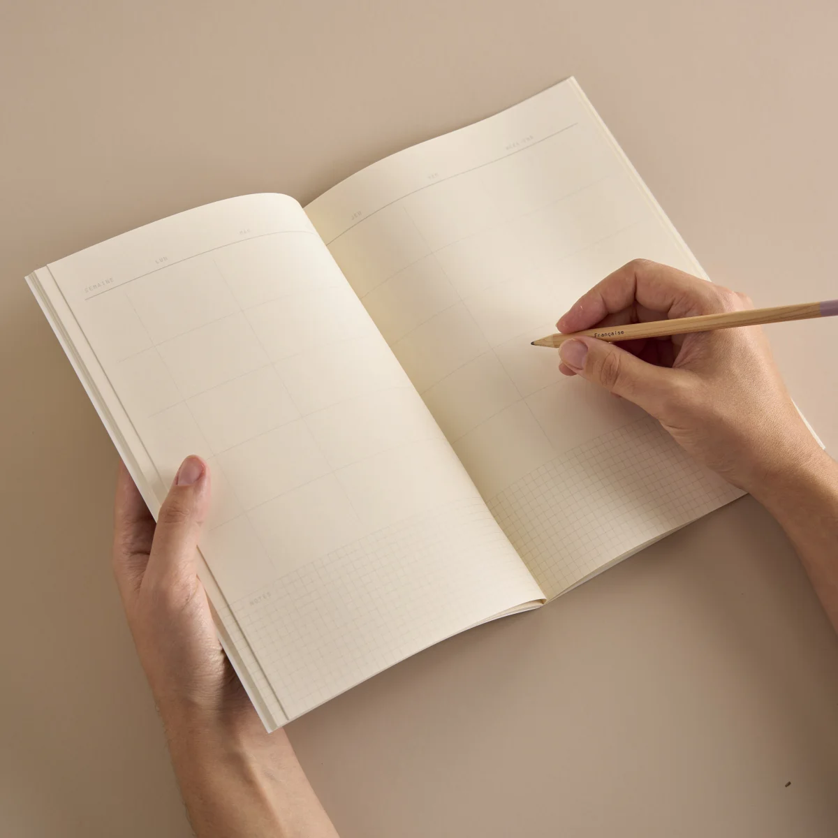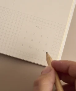 Vous y trouverez un tableau pour noter vos événements chaque jour, ainsi qu’un espace pour vos pensées et le mois en cours.