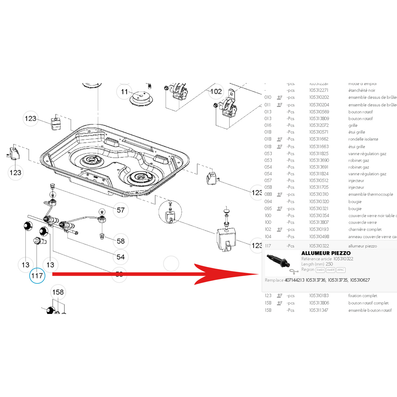 Allumeur Piezzo pour Gaziniere SMEV Dometic