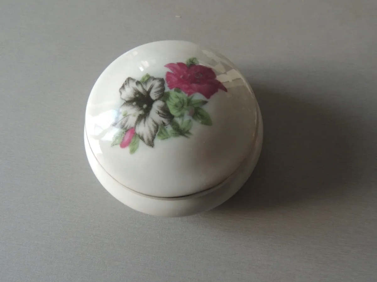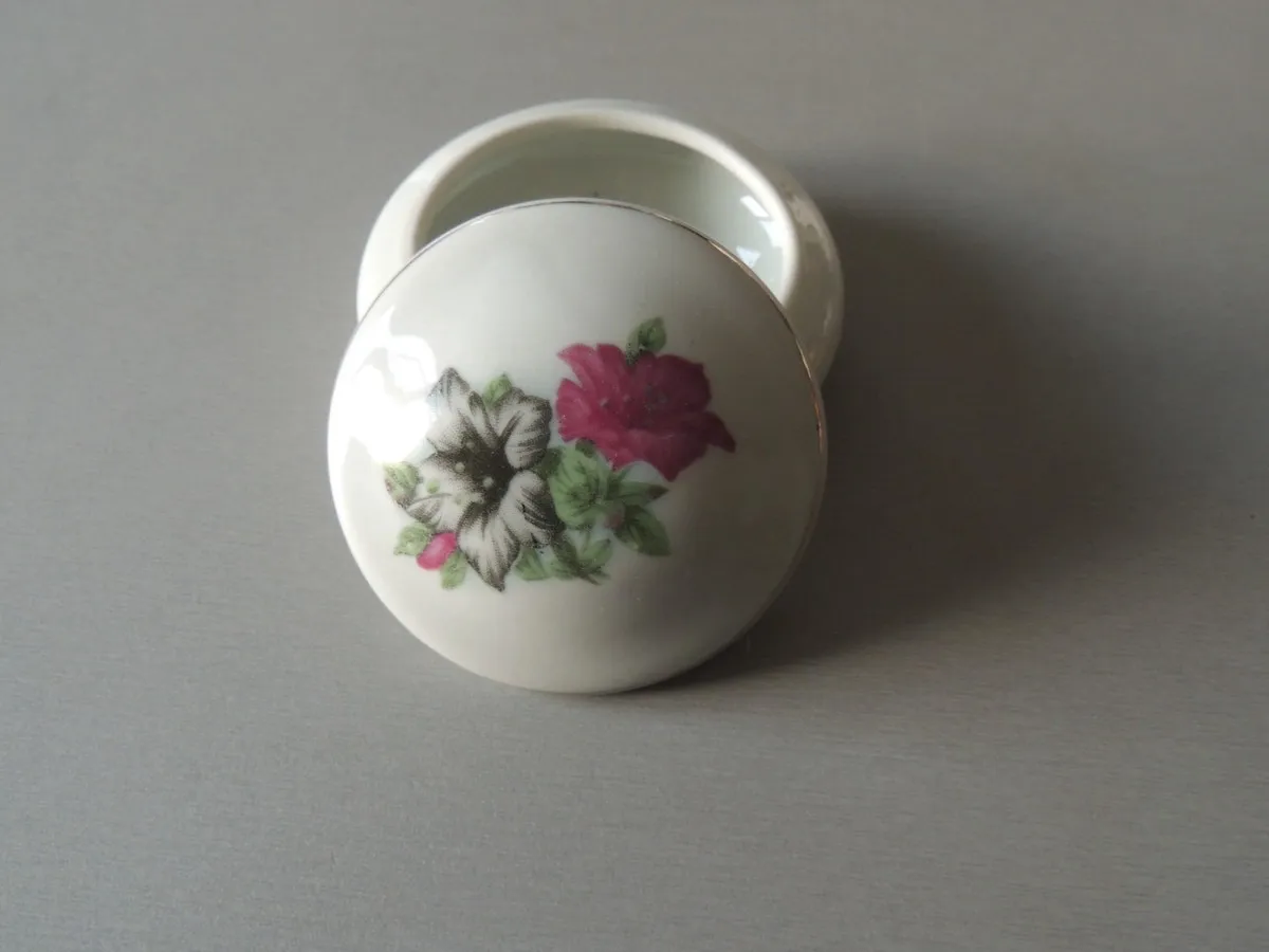 Boite à bijoux e porcelaine aux motifs floraux et liseré doré.