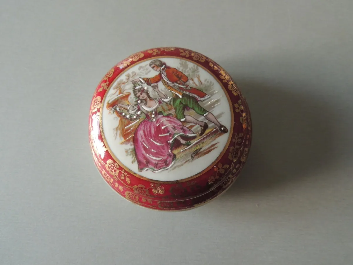 Ancienne boite à bijoux en porcelaine peinte à la main
