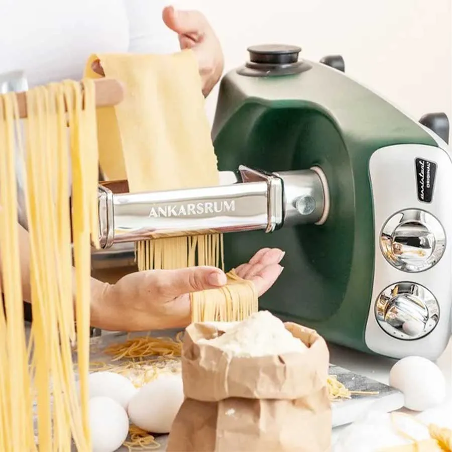 Machine à spaghetti pour robot Ankarsrum. Fabriquée en aluminium anodisé. Dimensions 8 x 23 cm