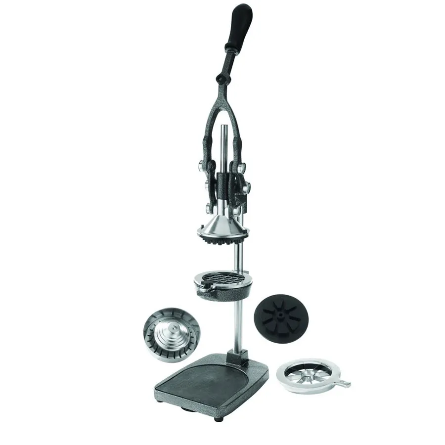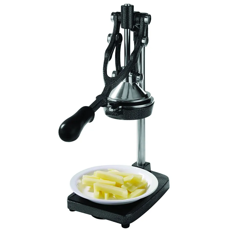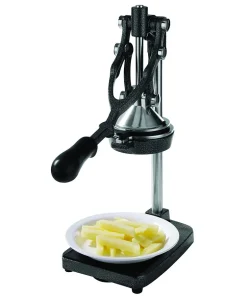 Appareil de découpe multifonction. Inclut 1 coupe pommes 8 quartiers, 1 coupe frites 12 mm et 1 presse agrumes. Fabriqué en fonte d’acier. Dimensions : 38,5 x 19 x 80 cm.