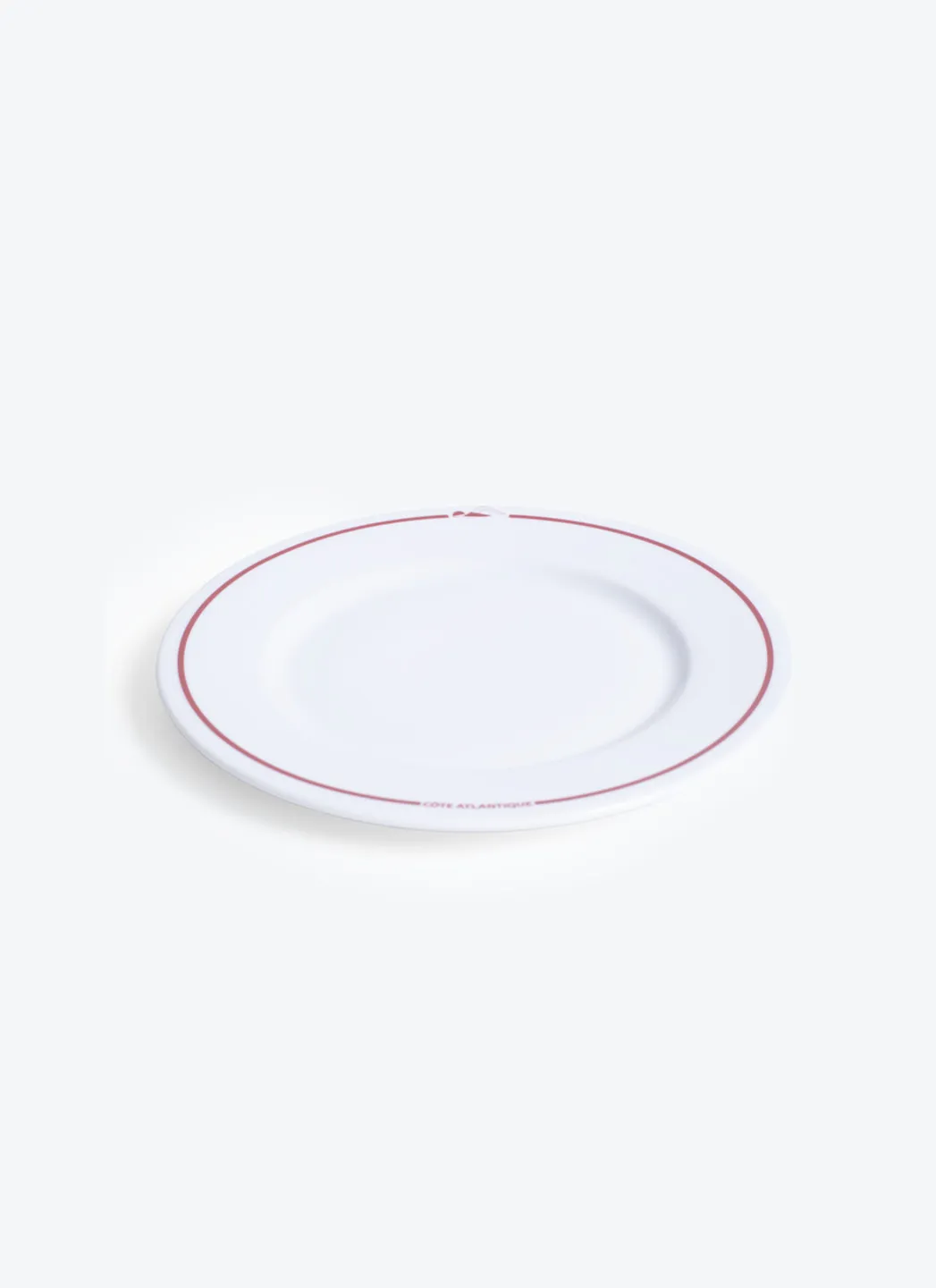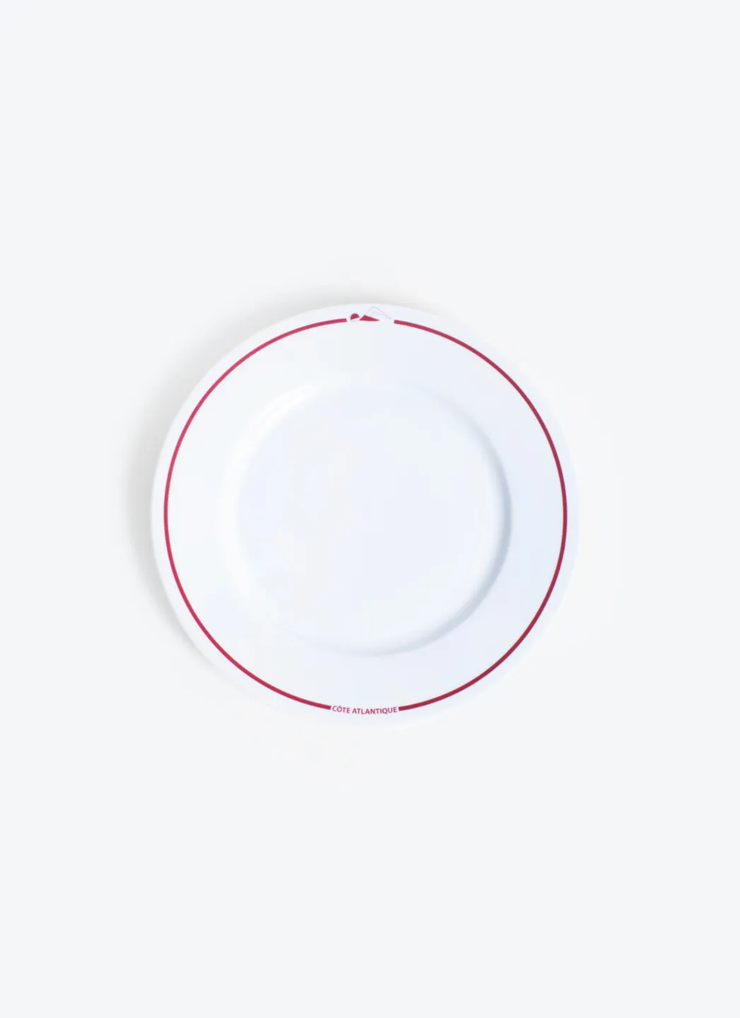 Assiette à dessert en porcelaine blanche avec une impression rouge « Côte Atlantique » fabriqué au Portugal dans la région de Porto. Un accessoire indispensable pour votre table.