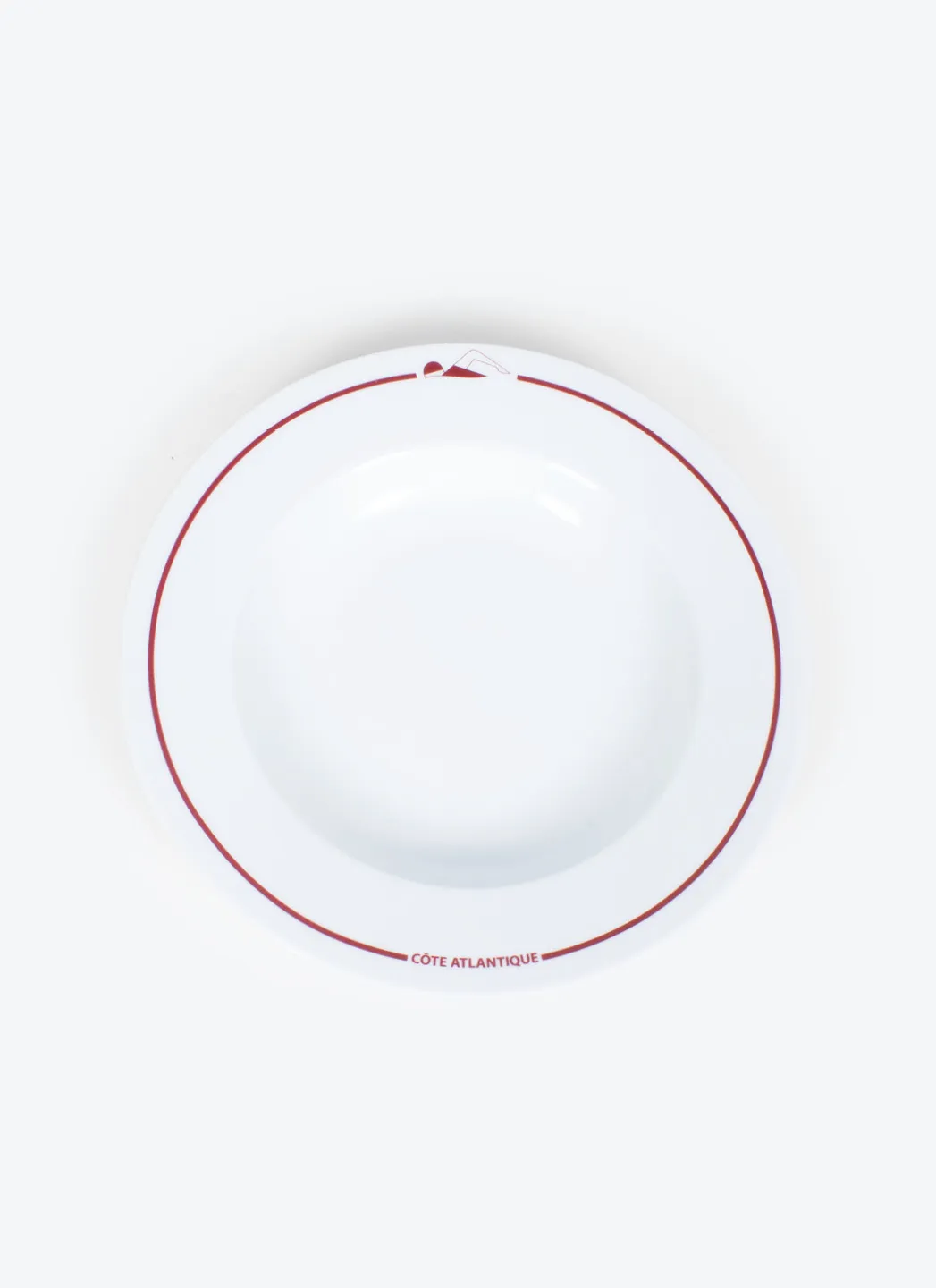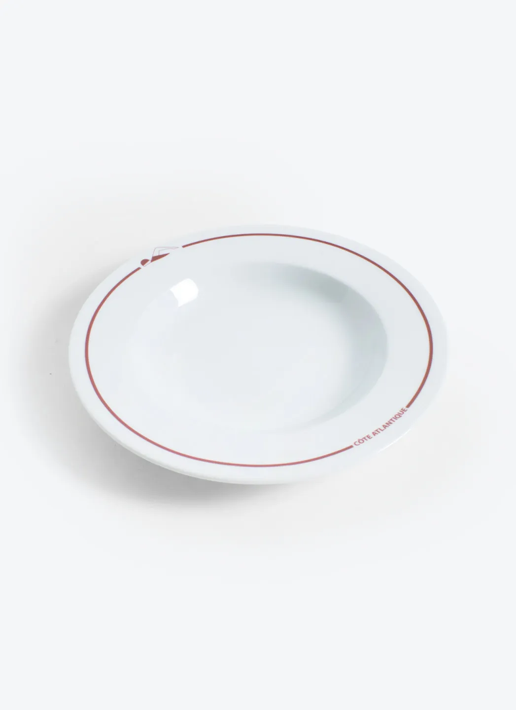 Assiette à soupe en porcelaine blanche avec une impression rouge « Côte Atlantique » fabriqué au Portugal dans la région de Porto. Un accessoire indispensable pour votre table.