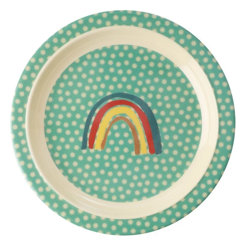 Cette assiette Arc-en-ciel en mélamine dans les tons de vert est issue de la collection Let’s Summer de la marque Rice.