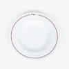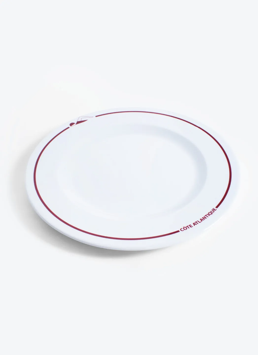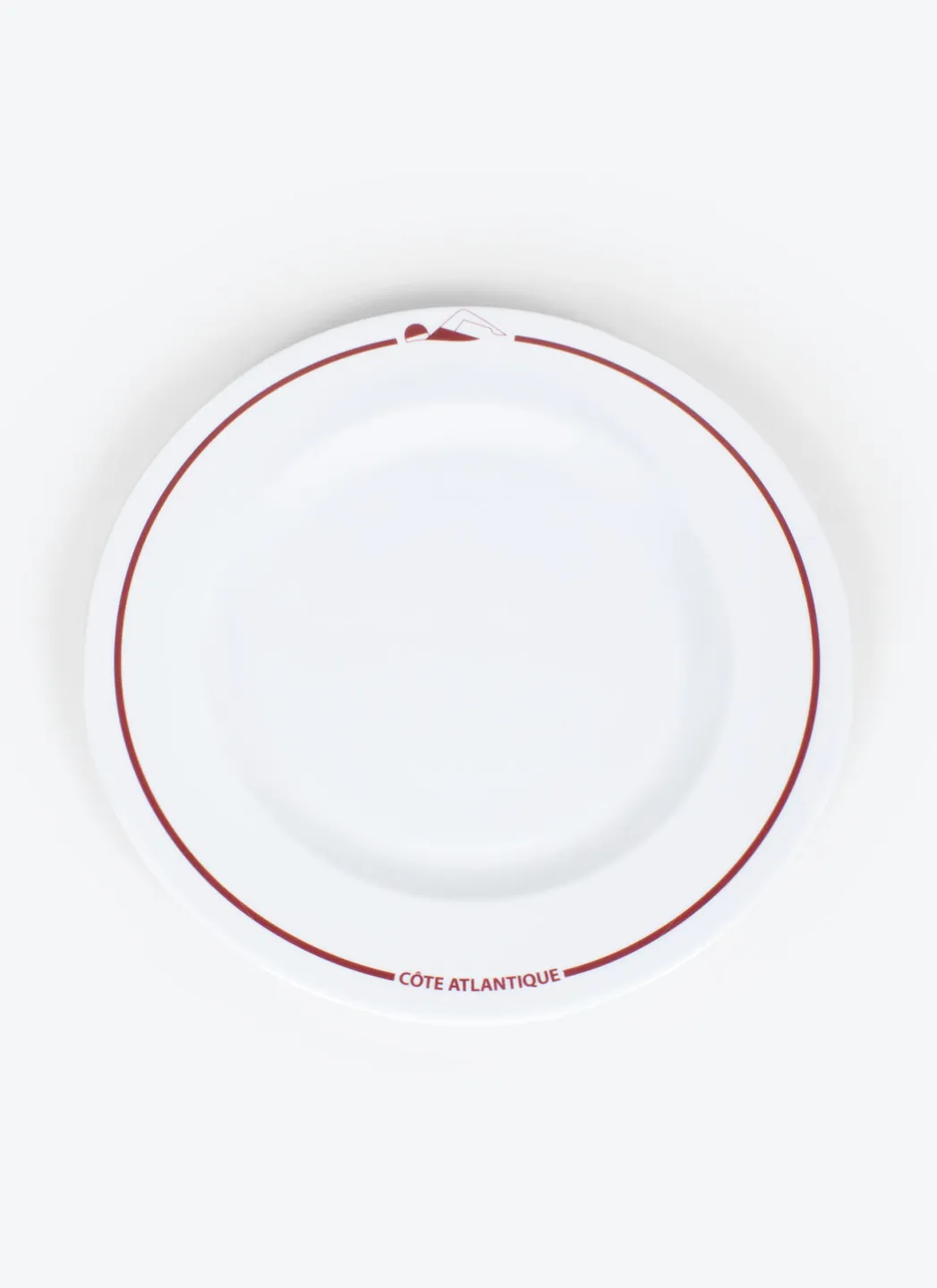 Assiette de présentation en porcelaine blanche avec une impression rouge « Côte Atlantique » fabriquée au Portugal dans la région de Porto. Un accessoire indispensable pour votre table.