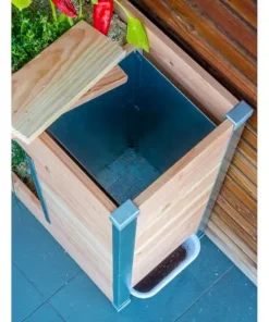 La partie composteur a les dimensions suivantes : 25 cm * 25 cm ; h = 48 cm.