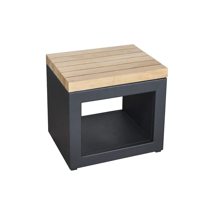 Structure en acier graphite. Assise en bois naturel. Dimensions 50 x 40 x 46,3 cm.