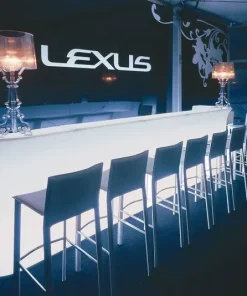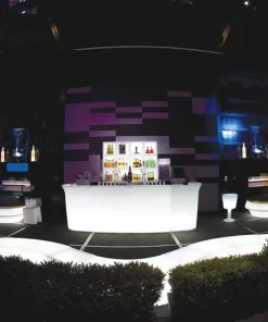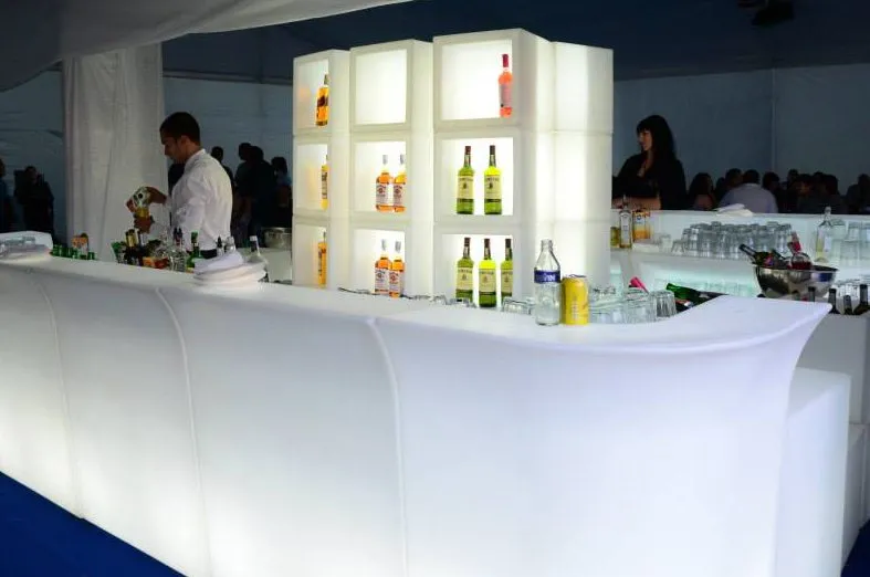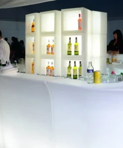 Le bar lumineux led Jumbo est un meuble de bar en PVC blanc éclairé de l’intérieur avec une ampoule blanche ou une ampoule RGB (permettant de choisir la couleur à l’aide d’une télécommande). Ce bar en location donnera à vos événements nocturnes une ambiance chic et originale. Pour obtenir un bar plus grand, il vous suffira d’associer plusieurs de ces bars, vous pouvez même créer des angles en prenant un corner bar. Les bars LED peuvent aussi bien être installés à l’intérieur qu’à l’extérieur en toute sécurité. Les bars lumineux peuvent être munis d’ampoules LED, vous pouvez alors choisir la couleur que vous souhaitez en fonction de l’ambiance recherchée. Vous pouvez compléter la location de bar avec la location de pompes à bière.