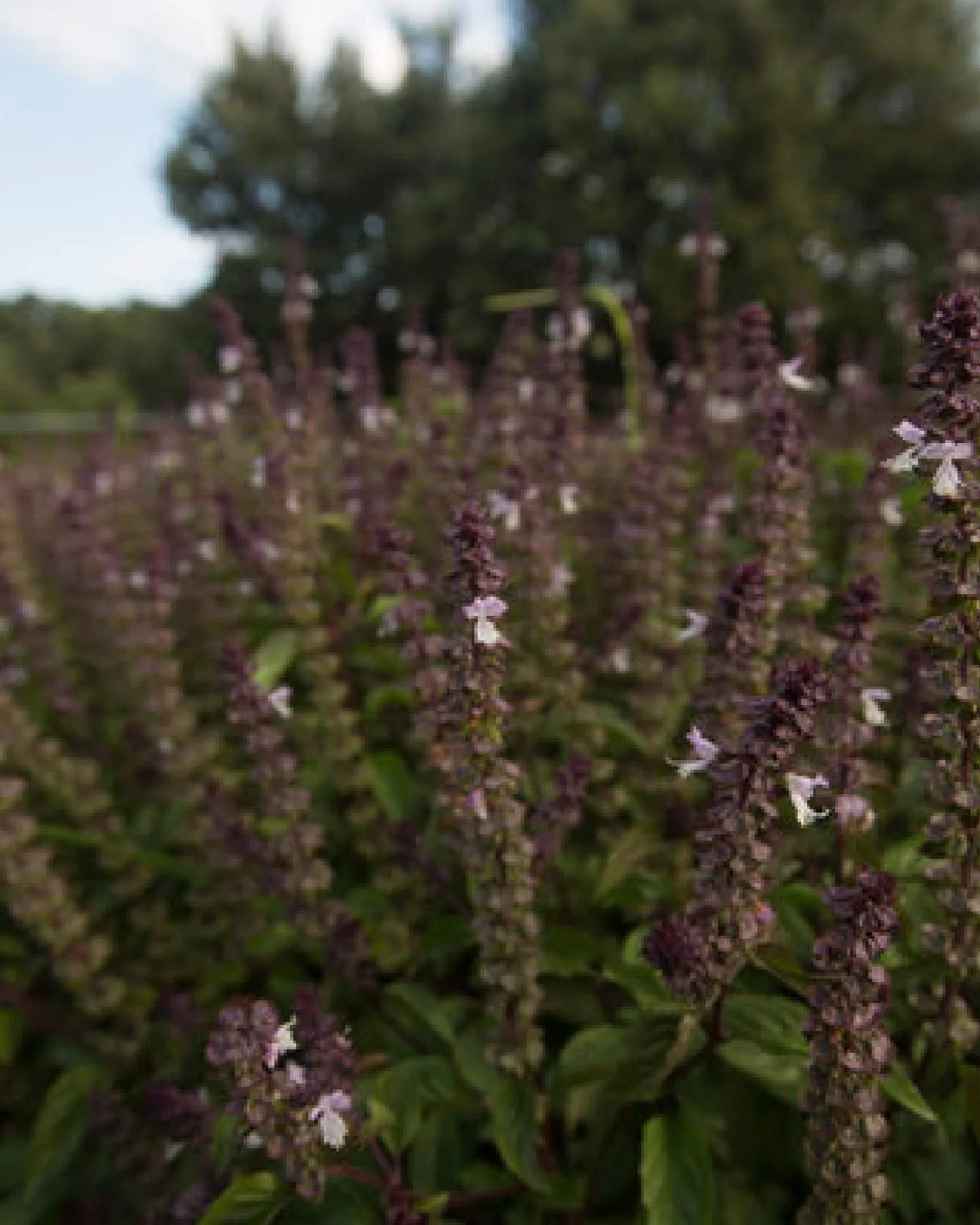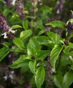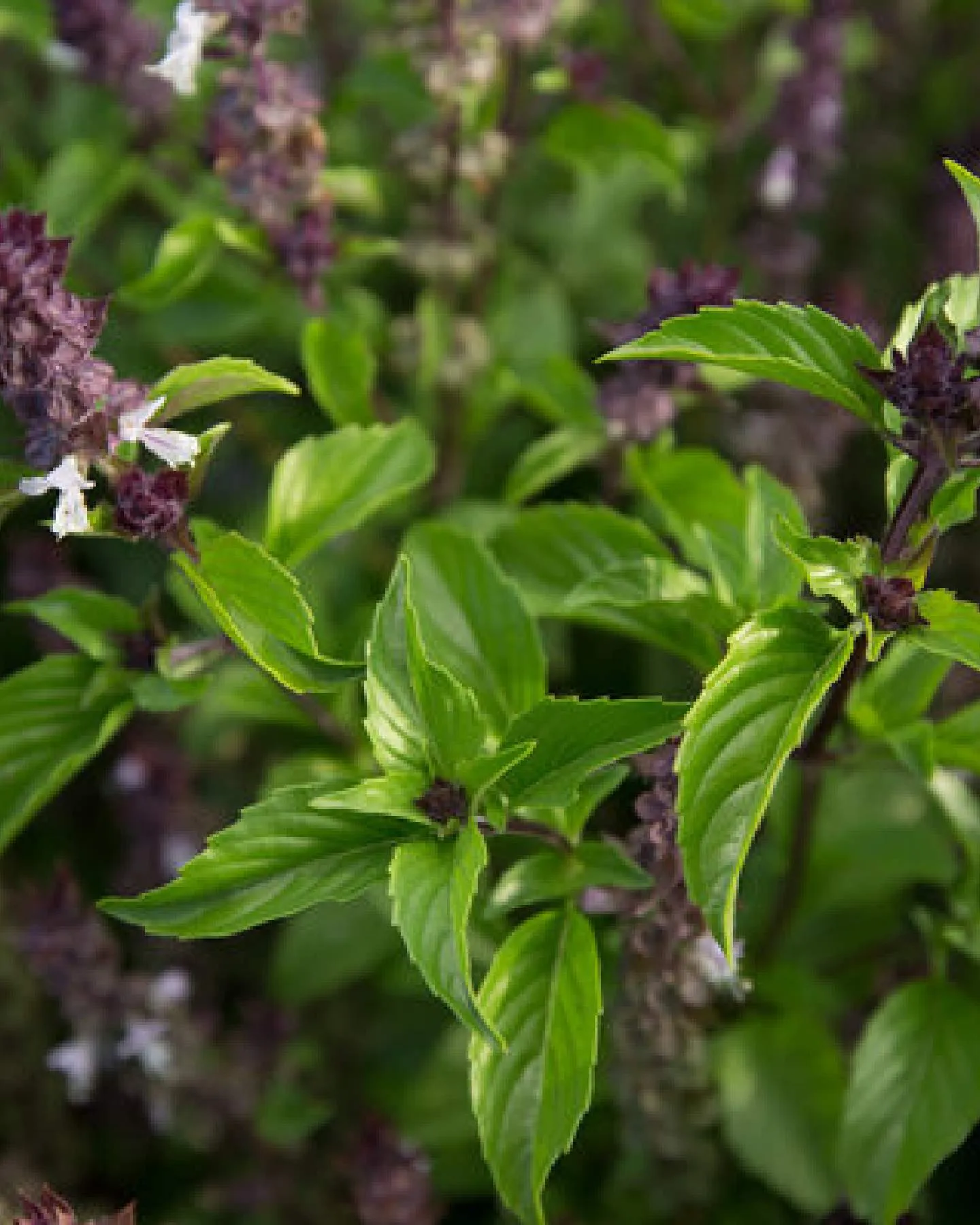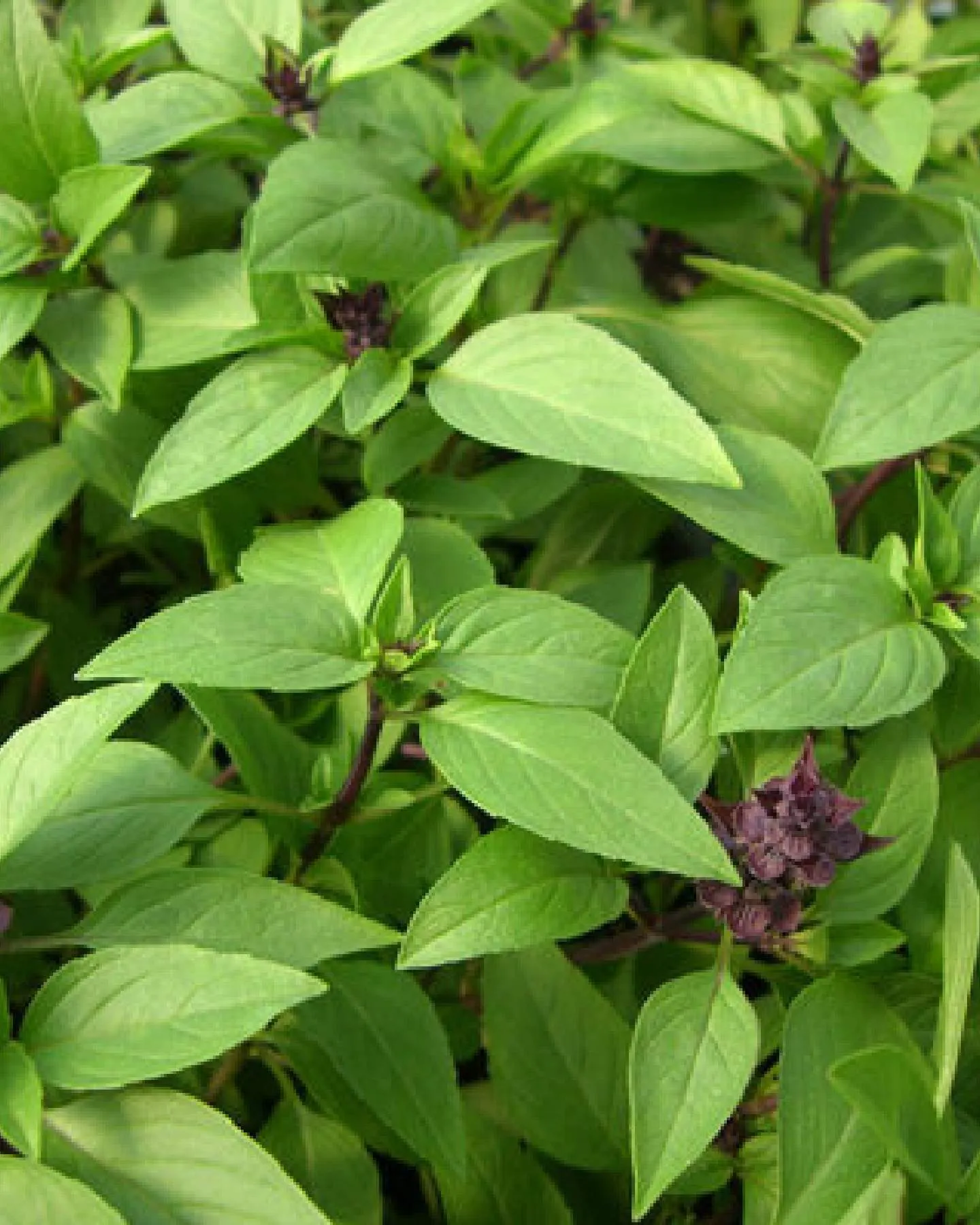 Le Thaïlandais à Petites Feuilles est un basilic de petite taille qui produit des fleurs et des tiges de couleur violette. Les feuilles vertes pointues offrent une saveur d’anis et de clou de girofle.