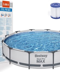 Il n’y a rien de mieux que d’avoir sa propre piscine dans son propre coin de jardin. Ce kit de piscine est également livré avec une pompe à filtre et un filtre pour garder l’eau de votre piscine propre à tout moment. Le cadre en acier résistant à la corrosion est équipé de notre système FrameLink ™ pour une connexion solide et sécurisée au cadre. La piscine est fabriquée en PVC durable et renforcée par un treillis en nylon entre les couches, grâce à laquelle elle sera résistante aux perforations et autres types de dommages. L’intérieur de la piscine est décoré dans des tons blanc et bleu avec une imitation de mosaïque.