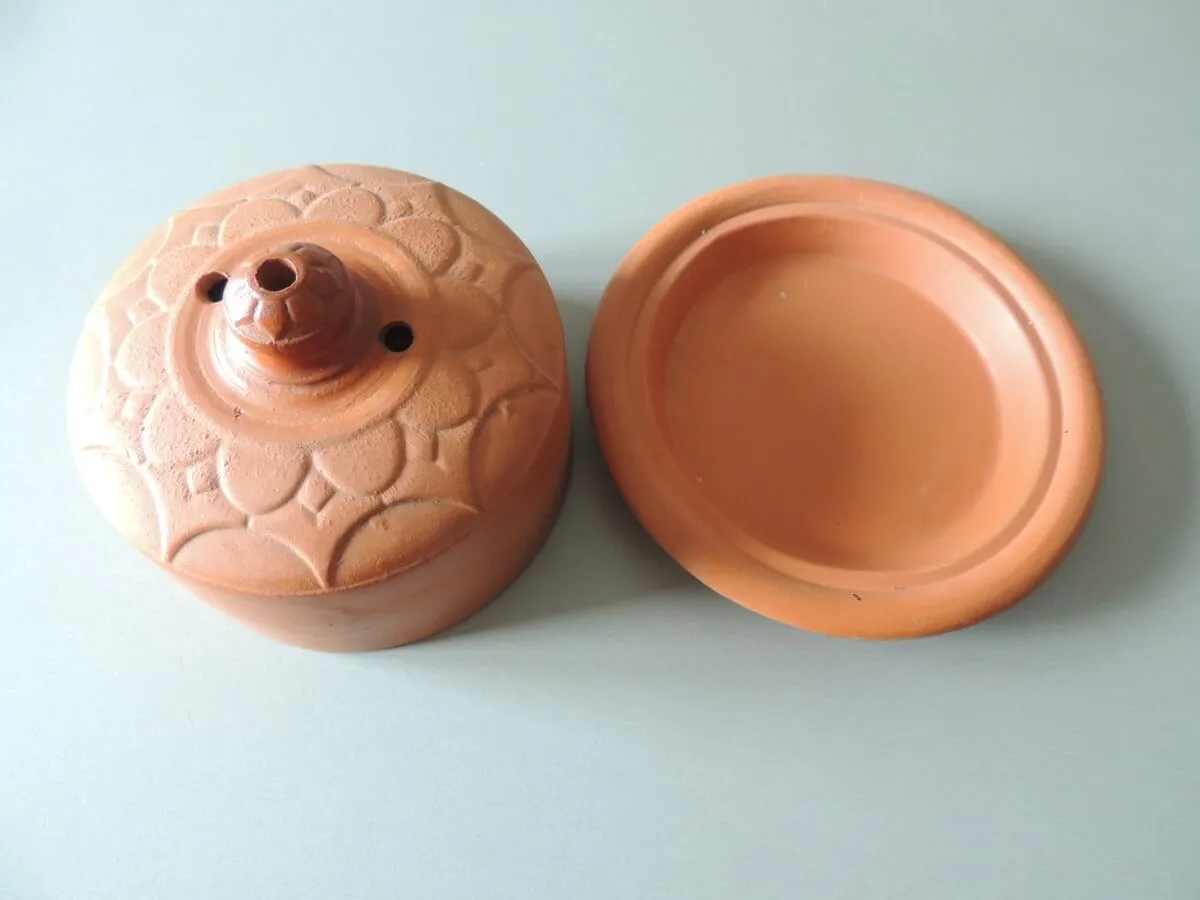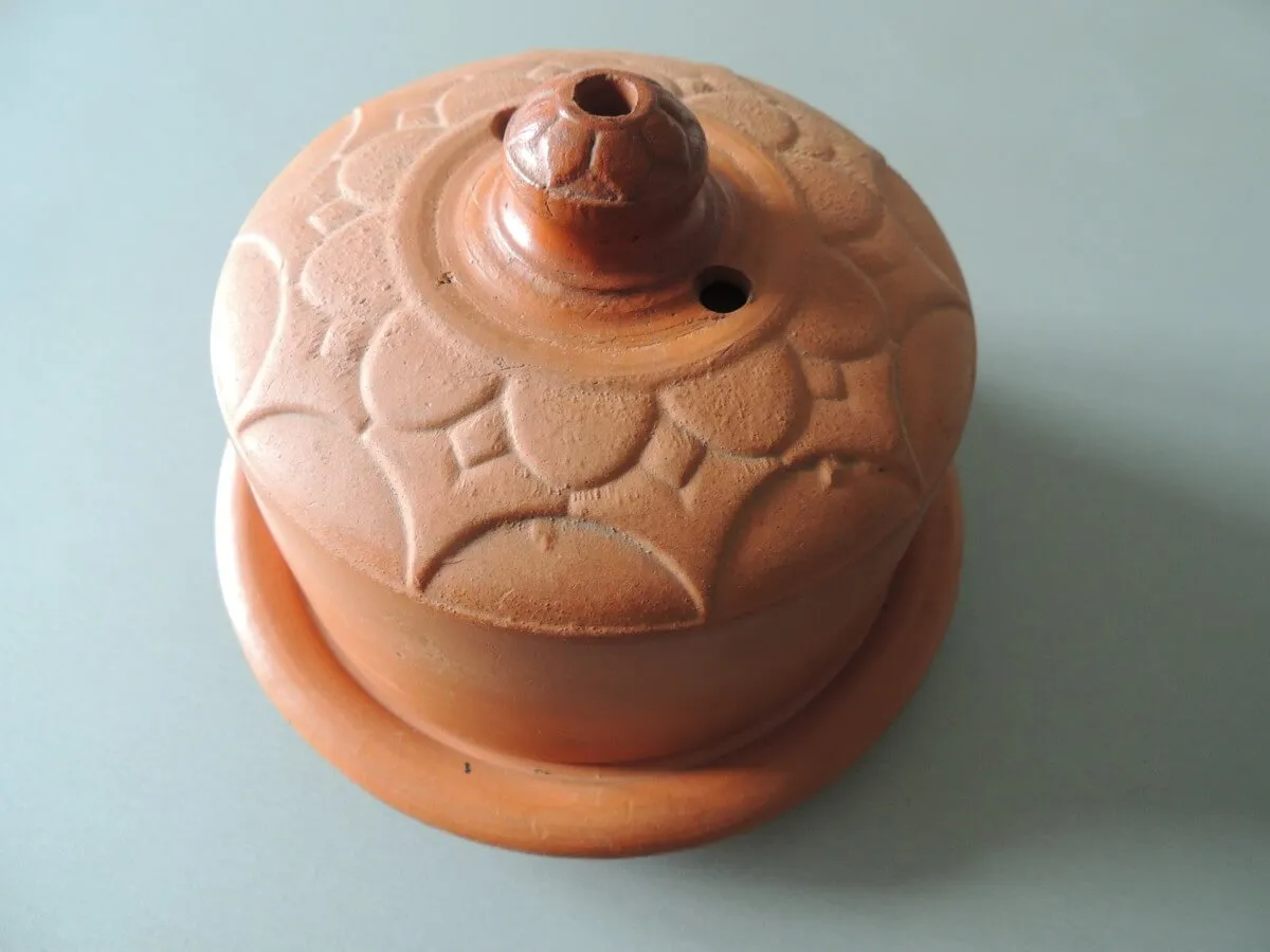 Glacière à beurre en terre cuite, Beurrier ancien avec couvercle, Conservation au frais, Décoration rustique, Campagne chic vintage 1930.