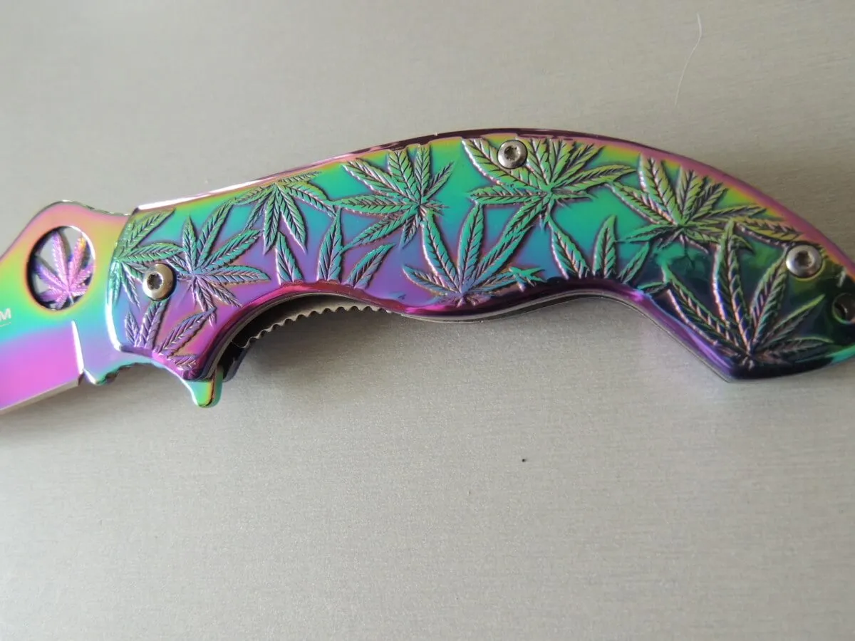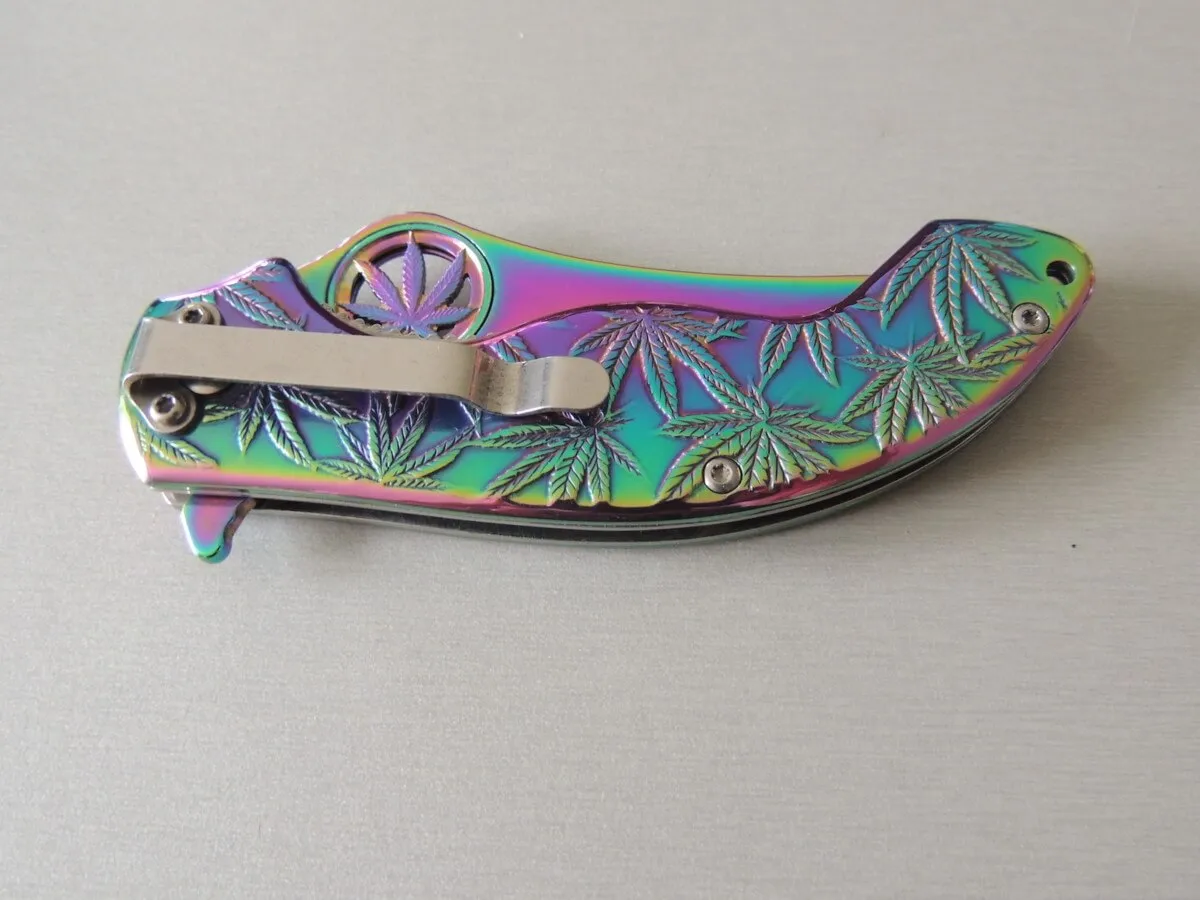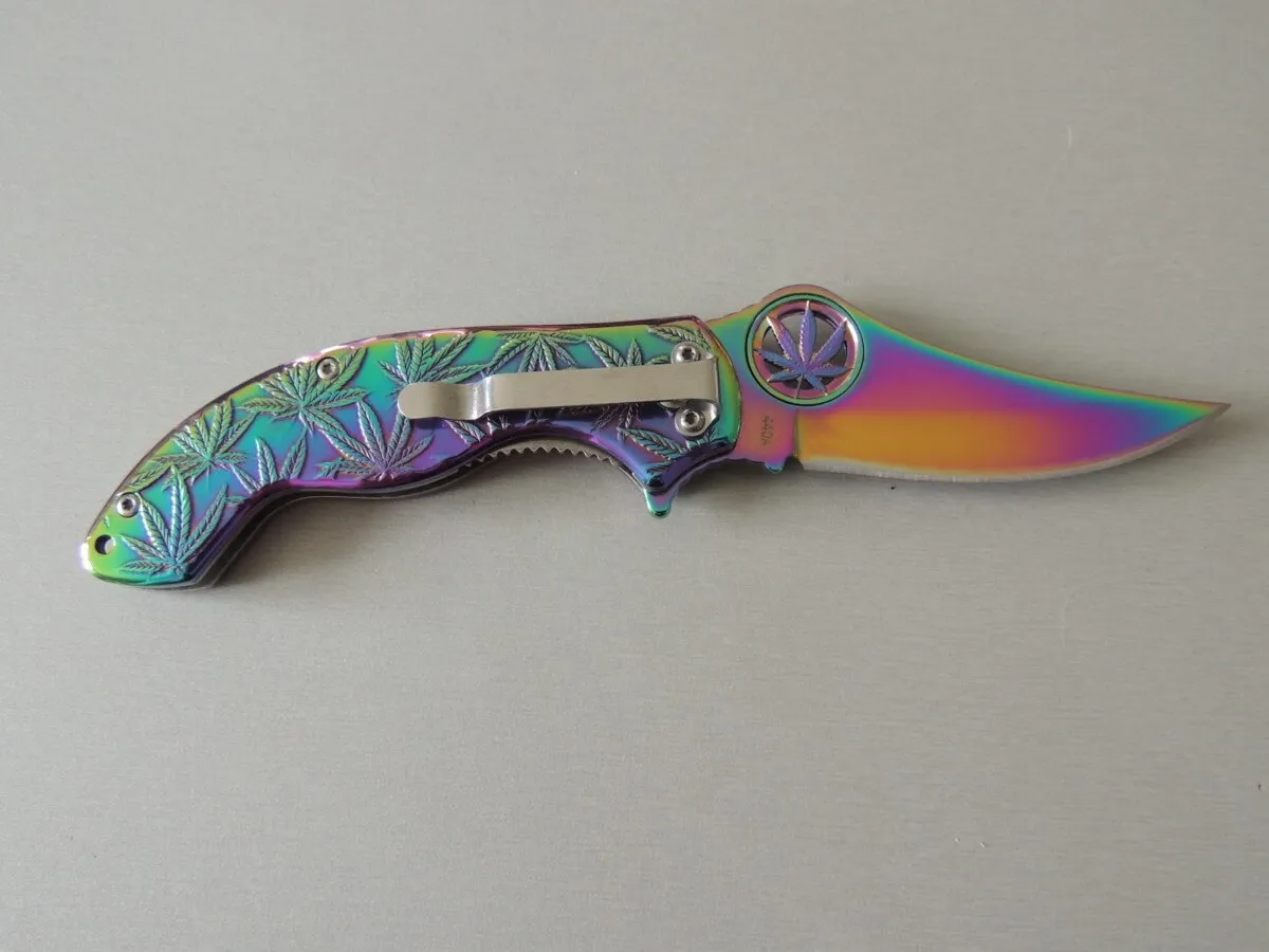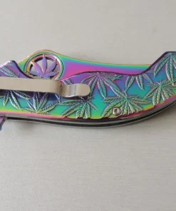 Le Magnum Colorado Rainbow est un couteau de poche pratique et robuste avec le revêtement de couleur arc-en-ciel populaire. C’est le couteau parfait pour tous les botanistes amateurs et amis de la plante utile extrêmement polyvalente de la famille du chanvre. La poignée robuste en acier inoxydable est décorée des feuilles caractéristiques de l’herbe légalement disponible dans le Colorado et de plus en plus d’autres États des États-Unis. Avec trou de lanière pratique et clip.