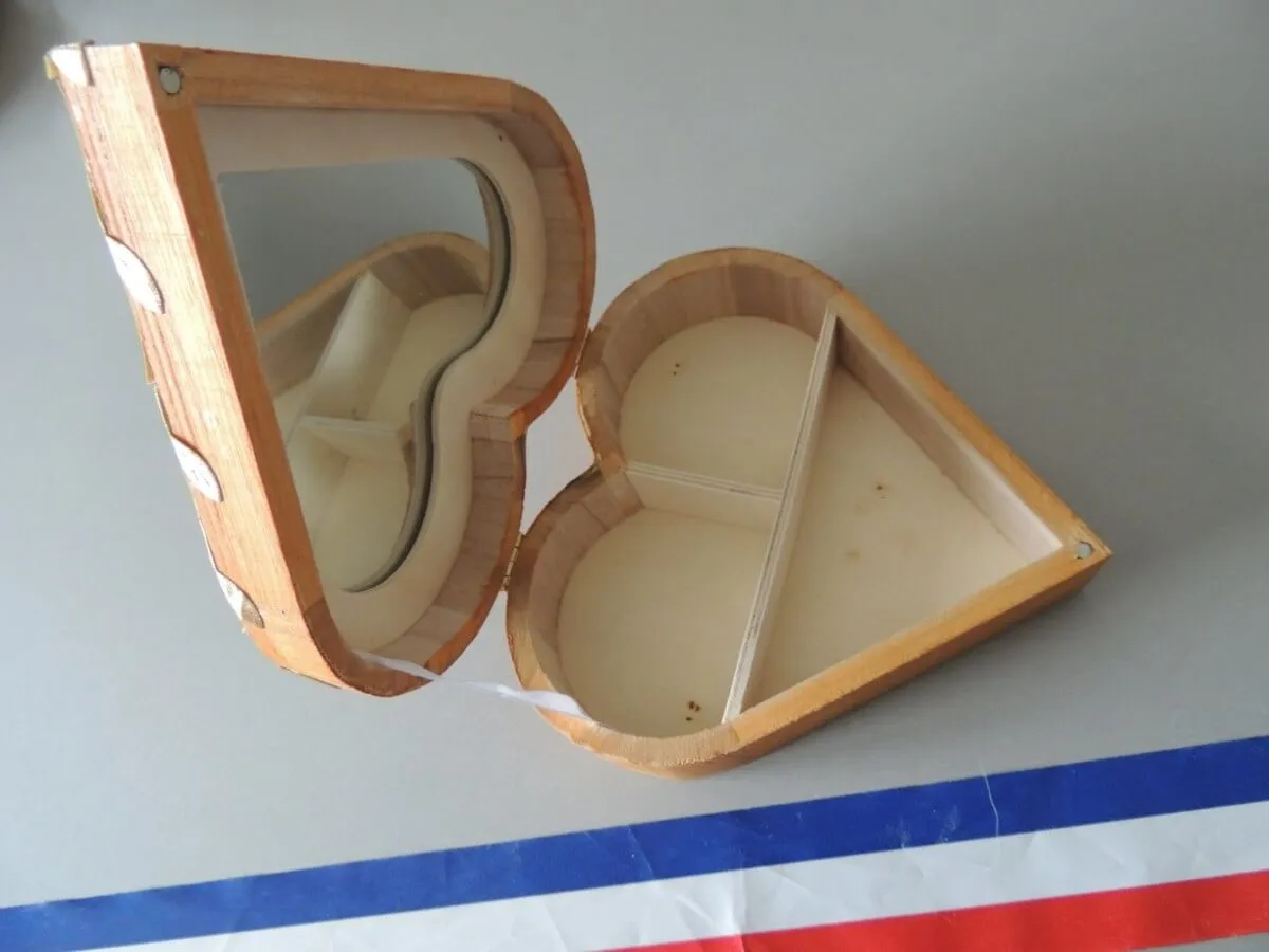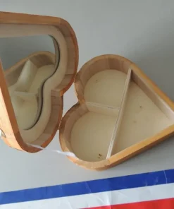 Entièrement réalisée à la main, cette boite à bijoux possède un miroir et des compartiments pour la rendre la plus pratique possible.