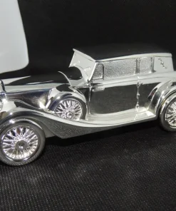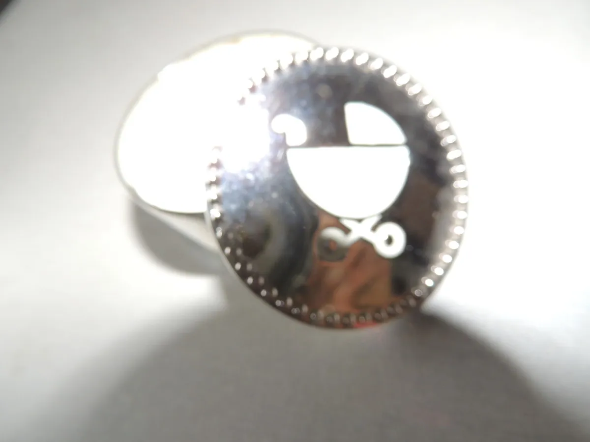 Boite à dent de lait motif landau blanc, en métal argenté.