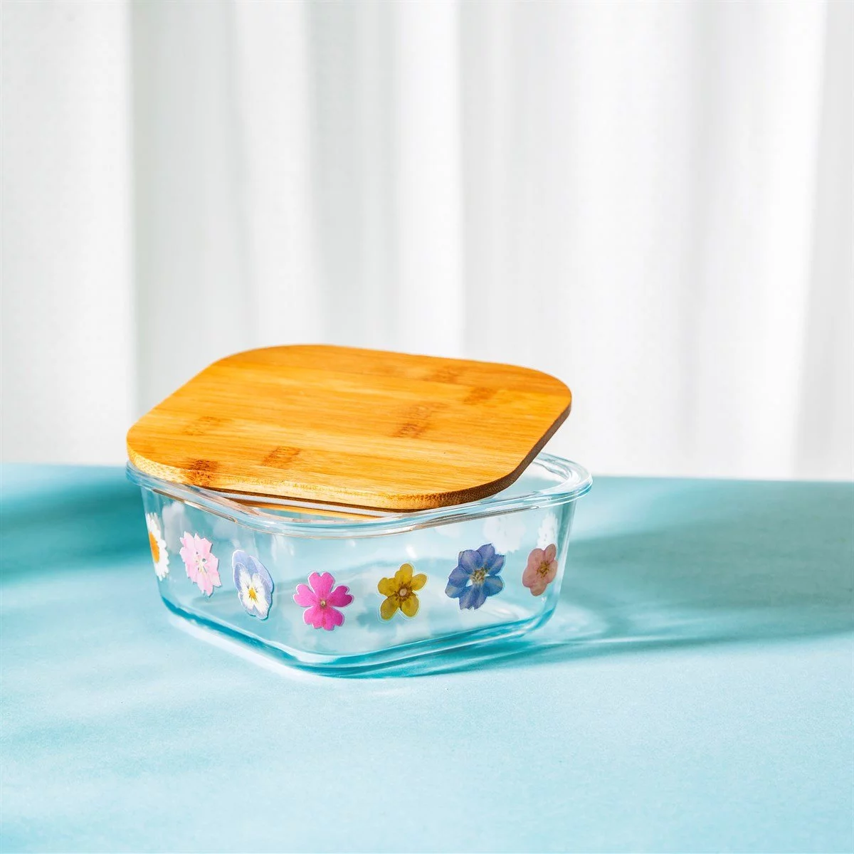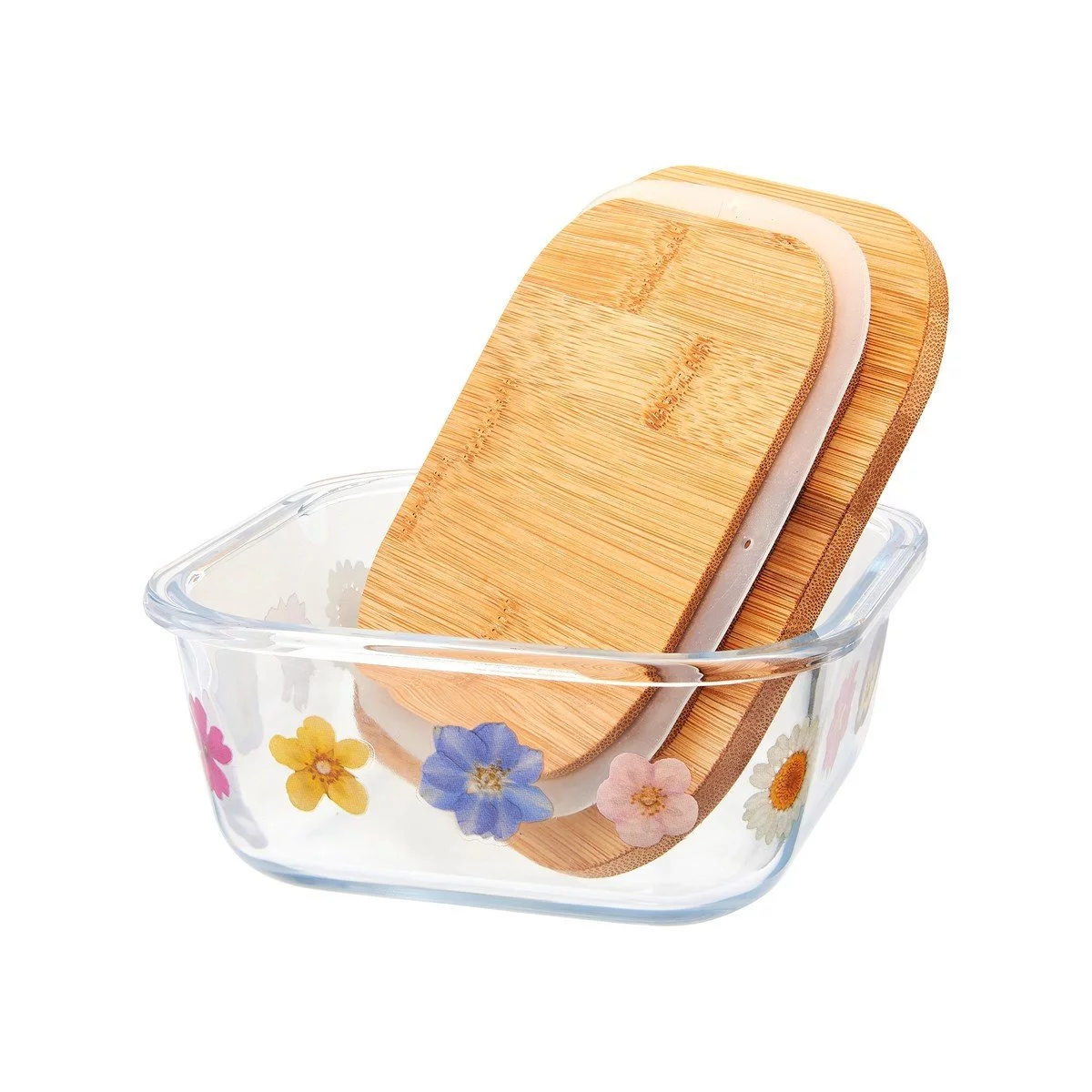 • Il est doté d’un couvercle en bambou naturel et d’un fond en verre transparent.