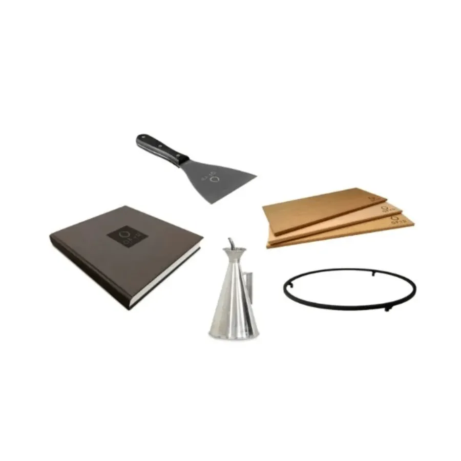 Découvrez l’ensemble d’accessoires de démarrage pour brasero Ofyr 100. Composé d’un livre de recettes, de planchettes de cèdre, d’un food bumber, d’une spatule inox pro et une burette.