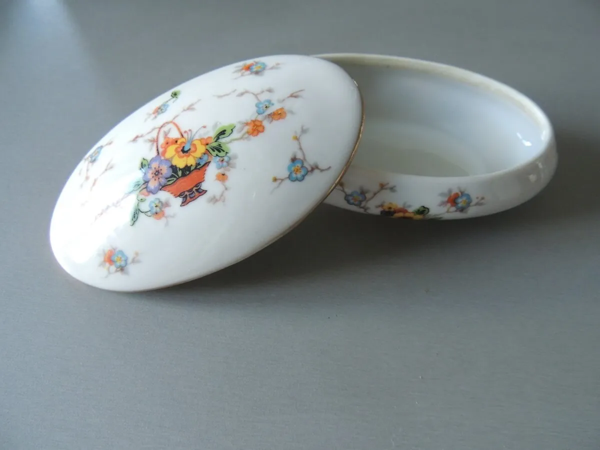 Bonbonnière/ boite à bijoux en porcelaine de Limoge motif floral
