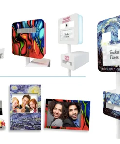 Entièrement personnalisable à vos couleurs (écrans, décor de la borne et photos délivrées), cette borne à selfie en location est parfaite pour mettre en avant votre marque ou votre enseigne et proposer une expérience unique, créatrice de trafic et porteuse d’image.