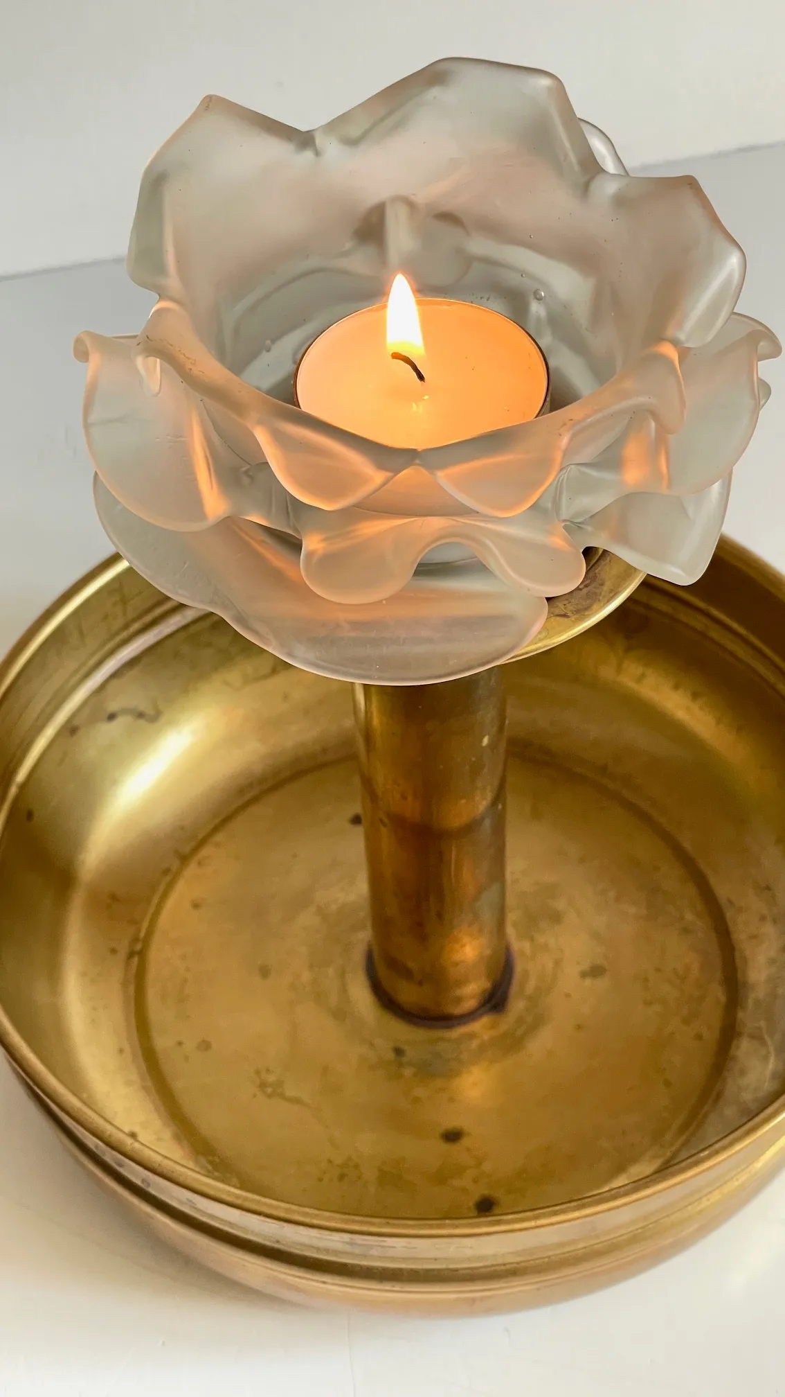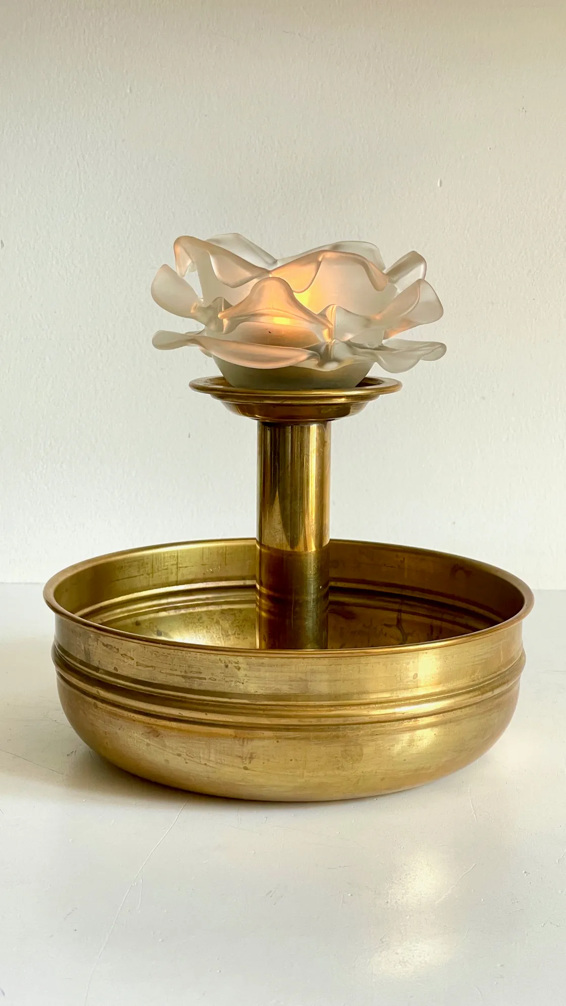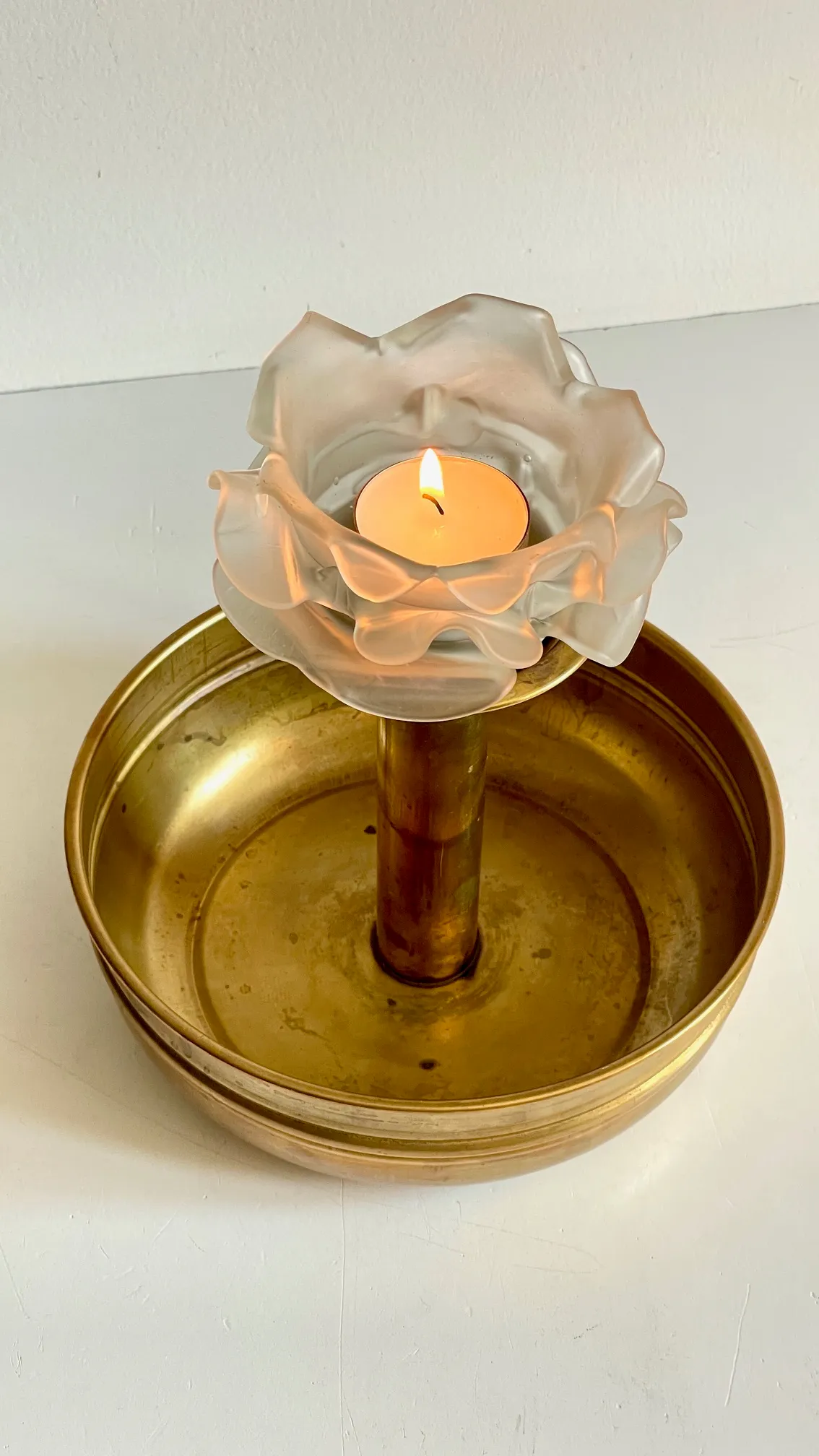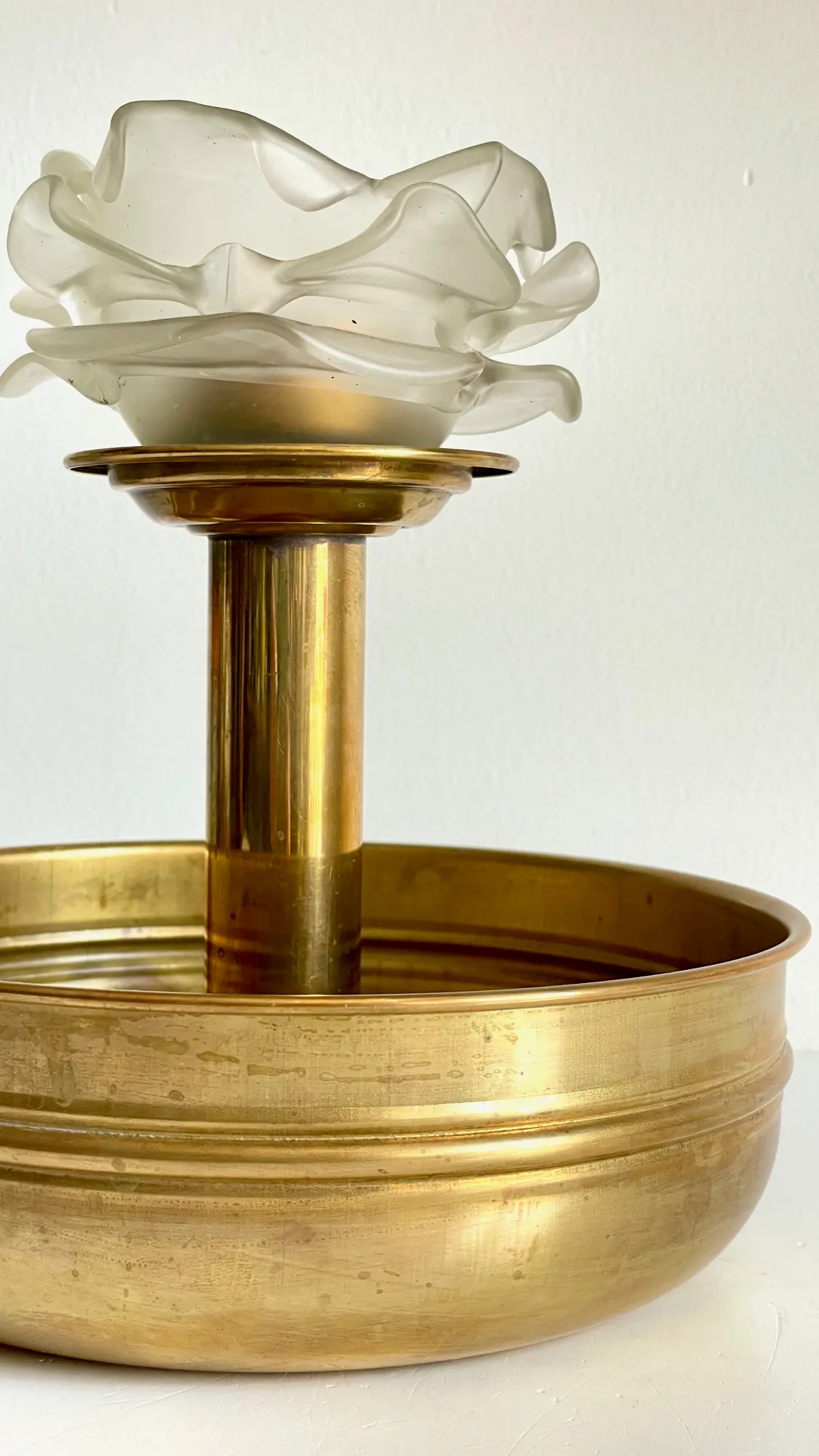 Superbe et Rare BOUGEOIR Centre de Table en LAITON et VERRRE Dépoli Vintage, on est sous le Charme !