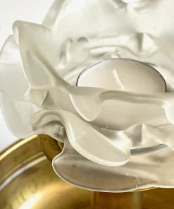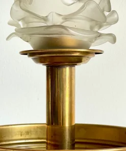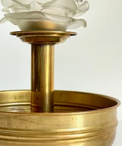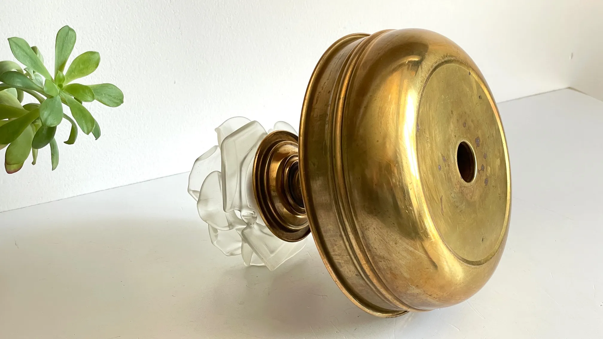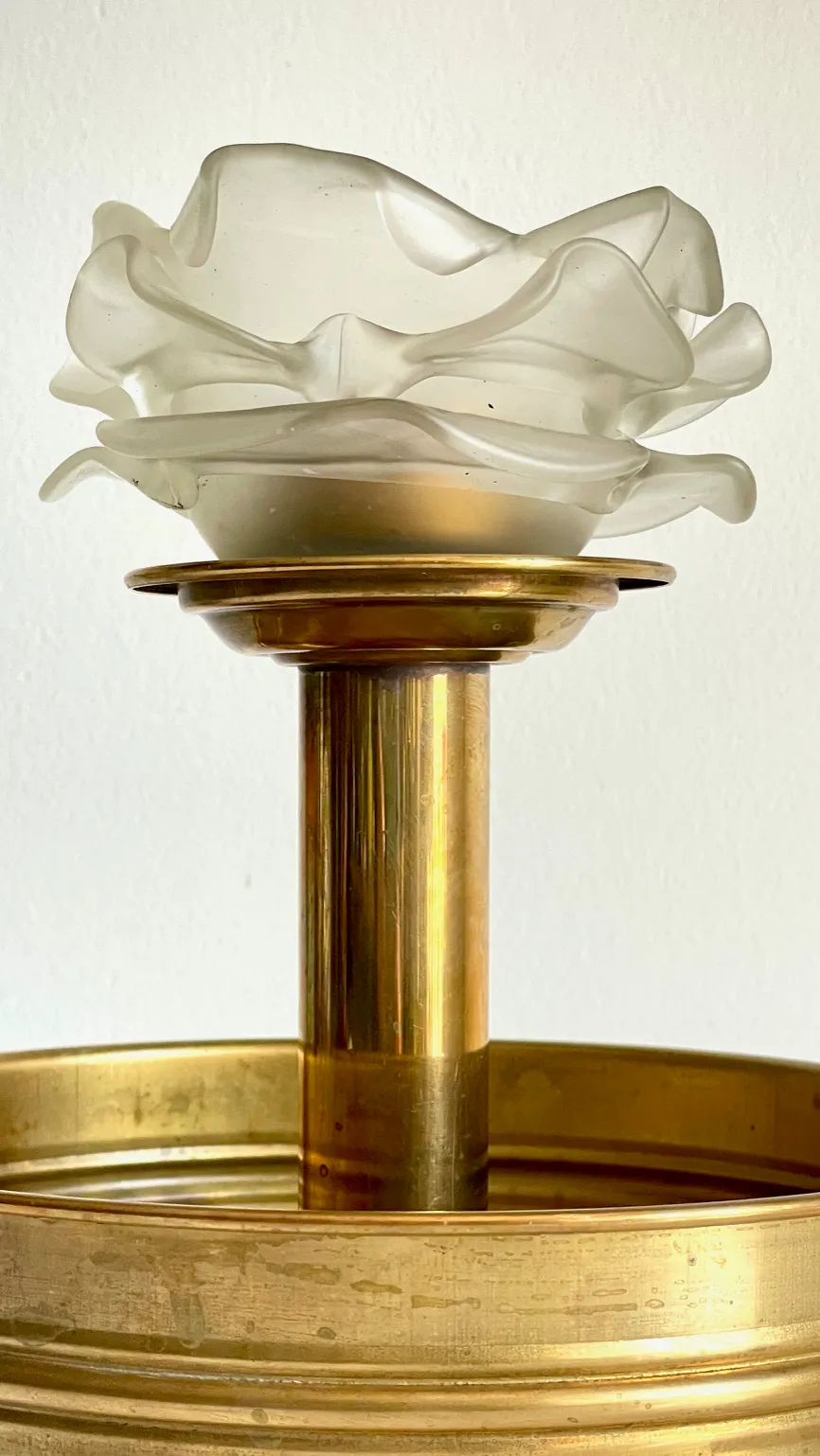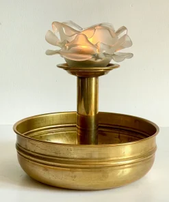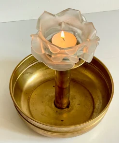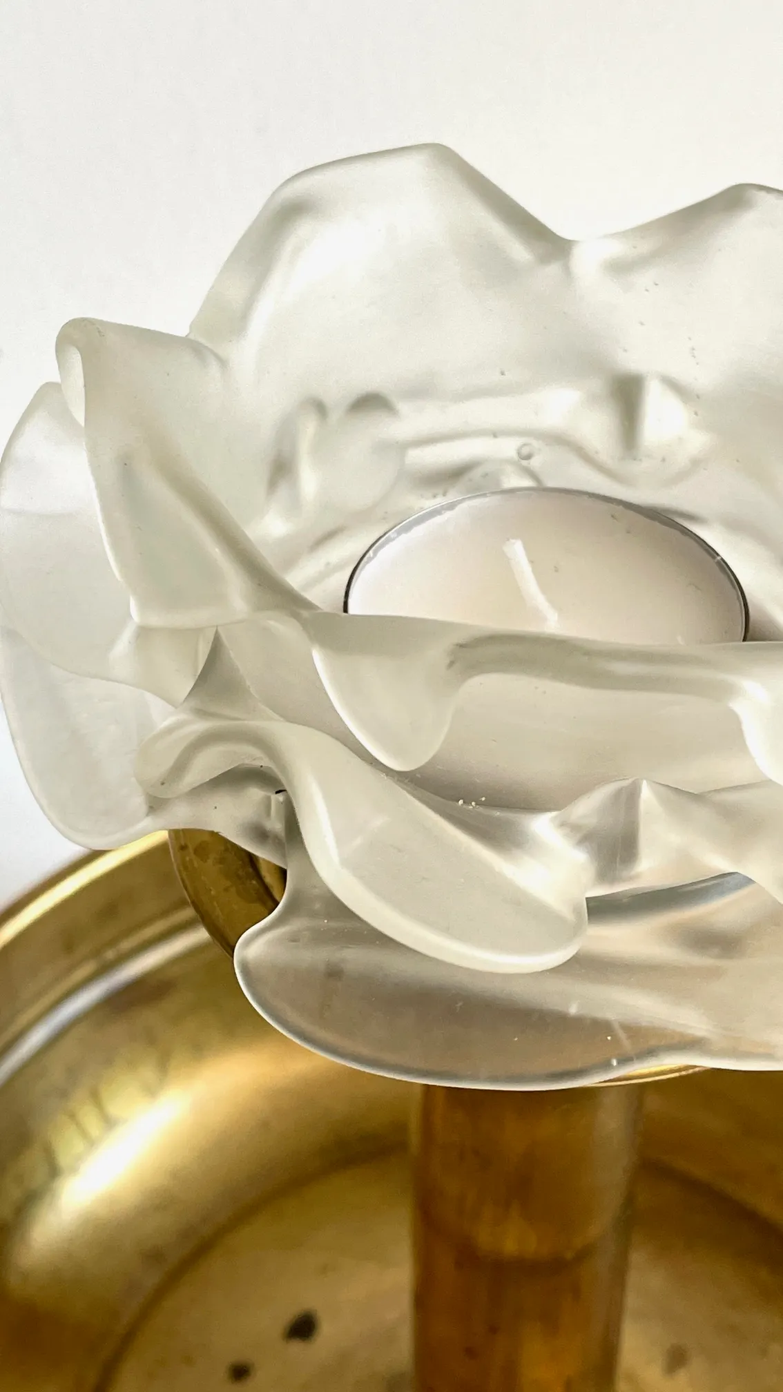 Superbe et Rare BOUGEOIR Centre de Table en LAITON et VERRRE Dépoli Vintage, on est sous le Charme !