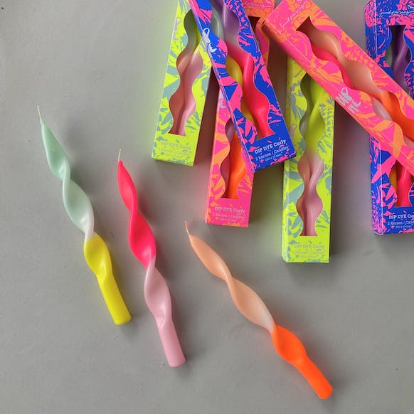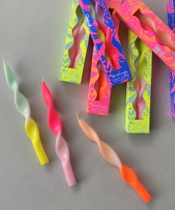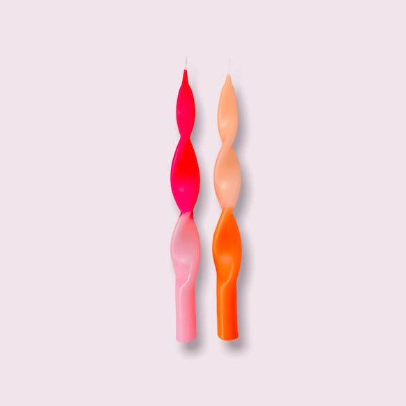 Explosion de couleurs avec ce duo de bougies spirales joliment colorées à la main dans des teintes fluo Miami Edition pink.