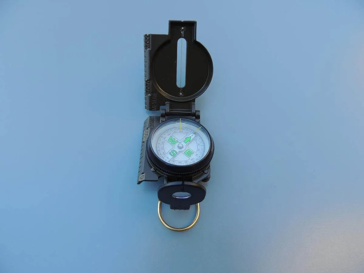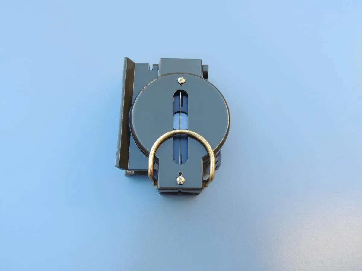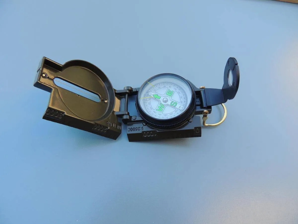 Boussole militaire, boitier métal kaki avec viseur.