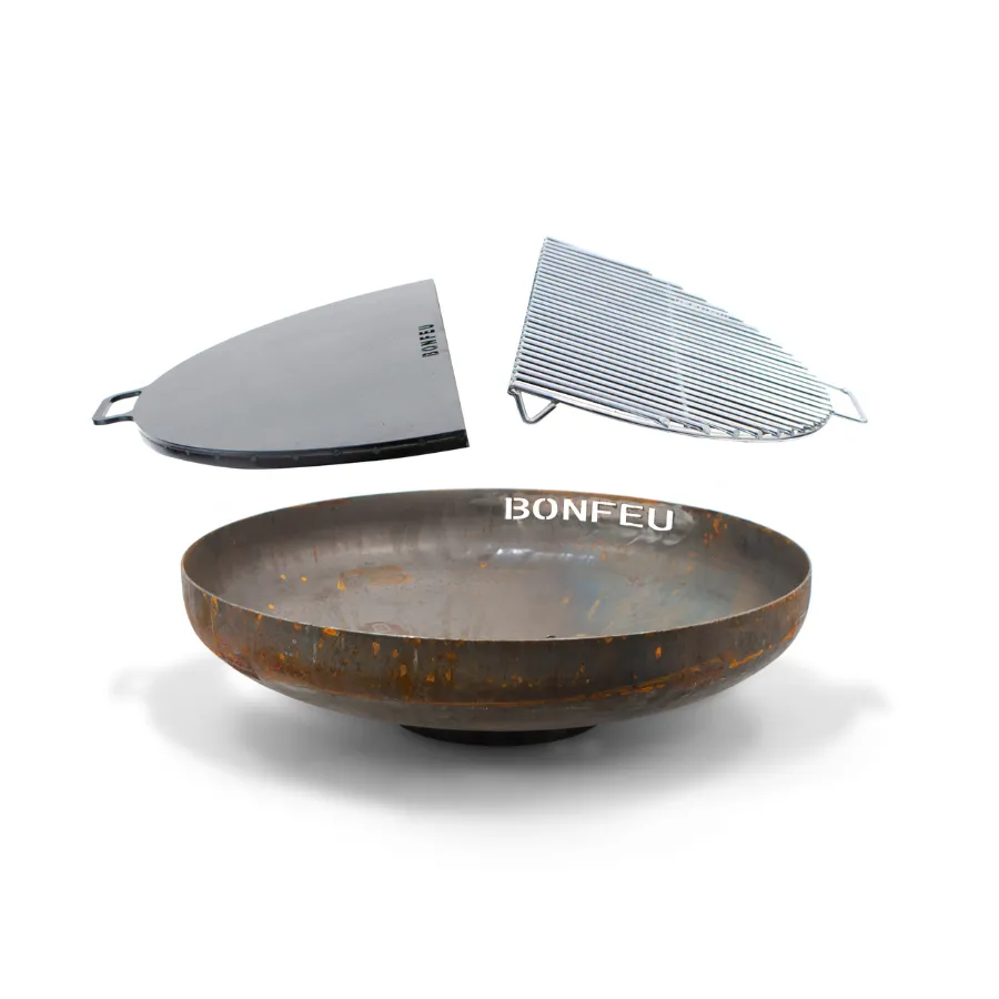 Configurez votre braséro de 80cm de diamètre en acier corten avec les accessoires qui répondent à vos envies !