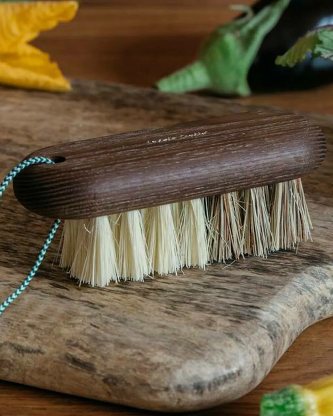 Bois de hêtre nourri à la cire d’abeille, et fibres naturelles de bassine et tampico
