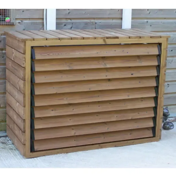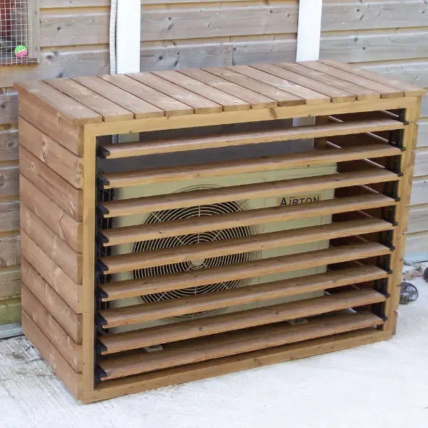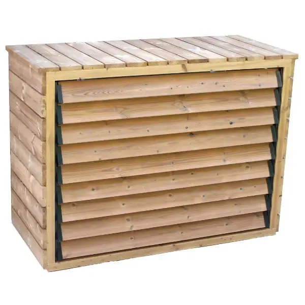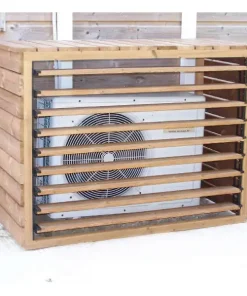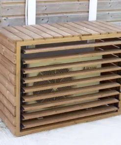 Ce cache clim en bois, esthétique et pratique, s’intègre parfaitement à vos espaces extérieurs.