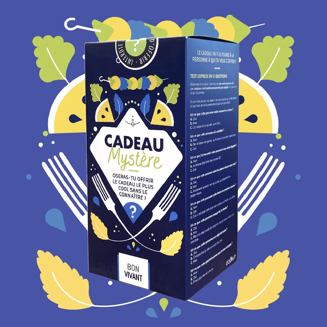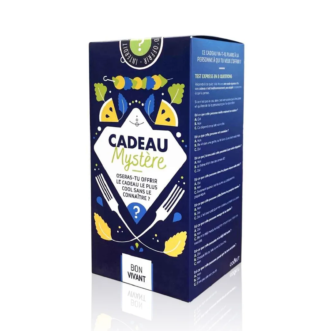 Le cadeau idéal quoi… mais cette fois, surprise ! Tu ne pourras le découvrir qu’au moment de l’offrir. Alors, tu ne sais rien du cadeau mais une chose est sûre : tu seras la personne la plus cool de la fête en offrant ce cadeau mystère ! À découvrir sur le thème « Bon vivant » avec un produit original à l’intérieur