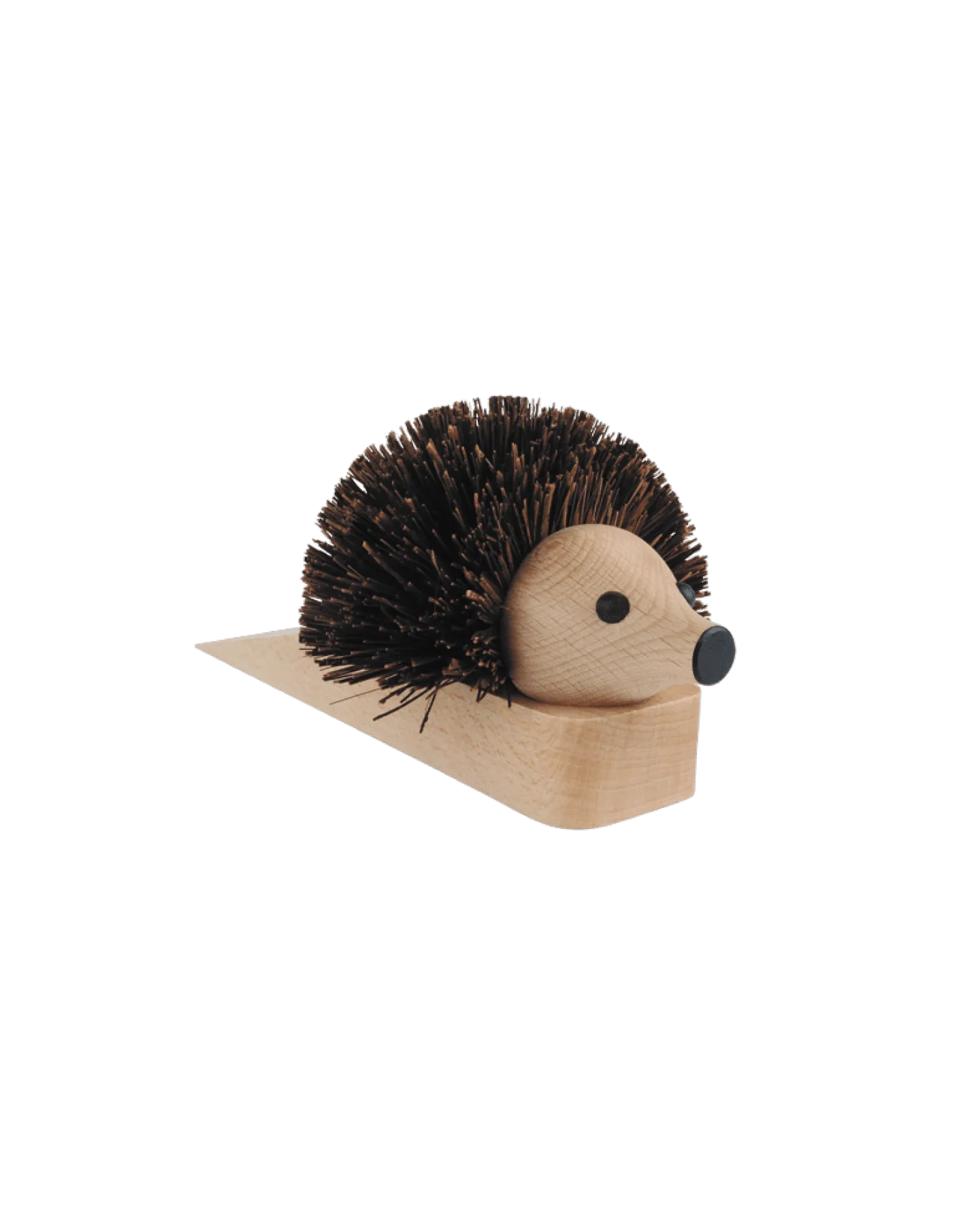 Notre hérisson est un joli « cale-porte » pratique dont le revêtement en borasse (espèce de palmier) sert également de brosse à chaussure.