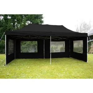Tonnelle à louer : ce canopy de couleur noir (8x4m) a été entièrement pensé pour vos événements. Cette tonnelle en location est composée d’une toile polyester imperméable, anti-moisissure et résistante aux UV. La toile des canopys est traitée comme retardateur de feu et assure une grande stabilité face au vent. Avec le canopy en location, vous pouvez assembler un système de gouttières, ce qui vous permet d’assembler plusieurs canopys en location. Sur demande, nous pouvons nous charger du montage et du démontage des tonnelles en location.