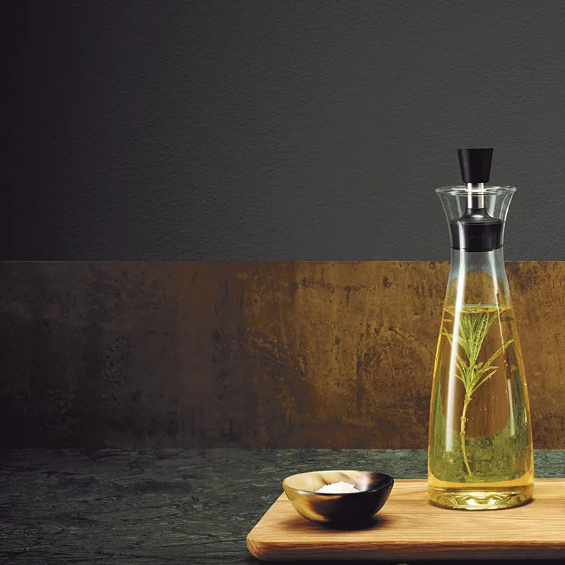 La carafe à huile & vinaigre Eva Solo est un produit élégant et très pratique. Parfaite pour décanter votre huile dans le flacon, pour la conserver dans votre réfrigérateur ou votre armoire de cuisine ou pour l’utiliser à table en tant que vinaigrette.