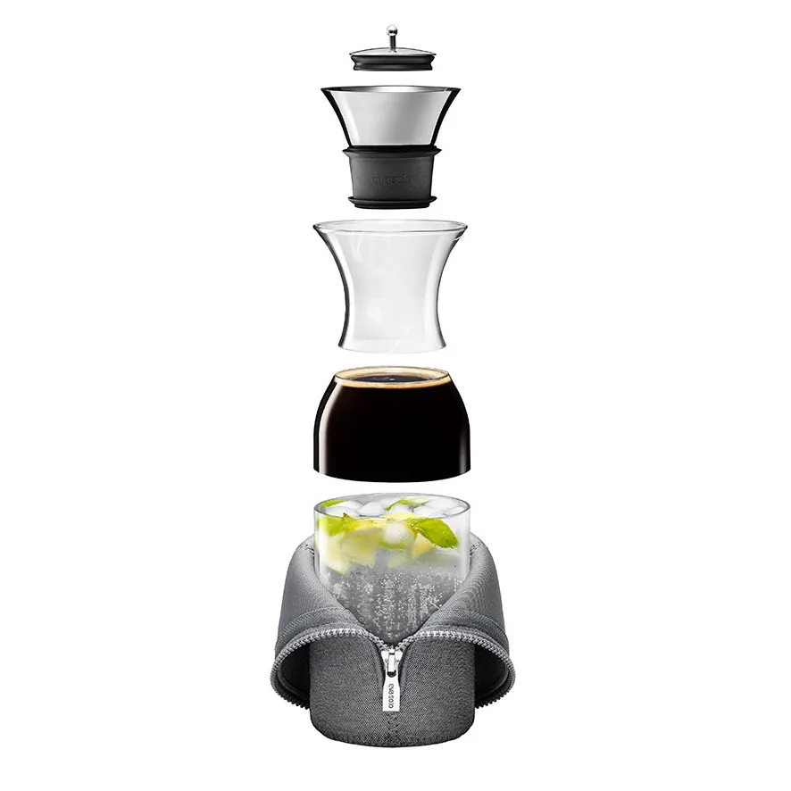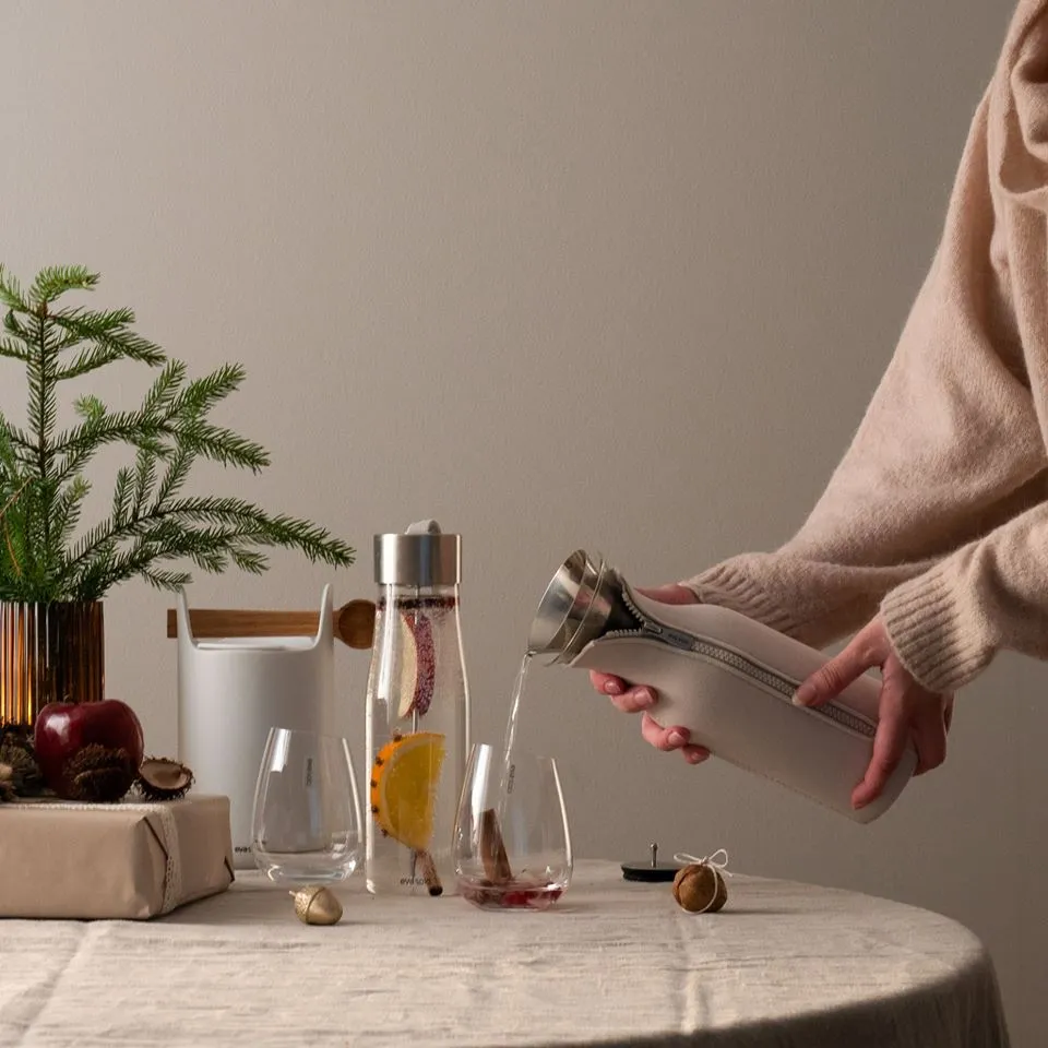 La carafe Eva Solo est adaptée à la plupart des portes de réfrigérateur. Elle convient aussi bien aux boissons chaudes qu’aux boissons froides. Avec son bec verseur breveté en inox et en silicone est garantit 100% stop-gouttes : le contenu se retrouve dans votre verre et non sur la nappe. Pour plus de praticité, son couvercle à bascule s’ouvre automatiquement. La housse permet de conserver le contenu chaud ou froid plus longtemps et empêche toute condensation de couler sur la table.
