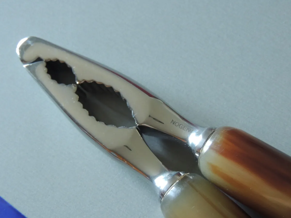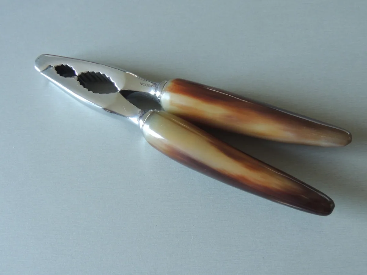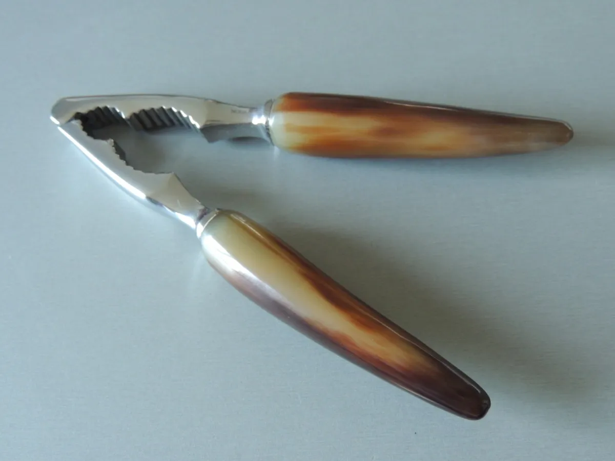 6 piques à escargots/ bigorneaux en corne et inox modèle escargot sur feuille sculpté