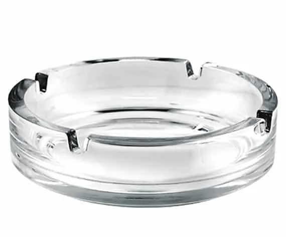 Cendrier publicitaire classique et sobre. 4 orifices taillés dans le verre pour poser votre cigarette si besoin est.