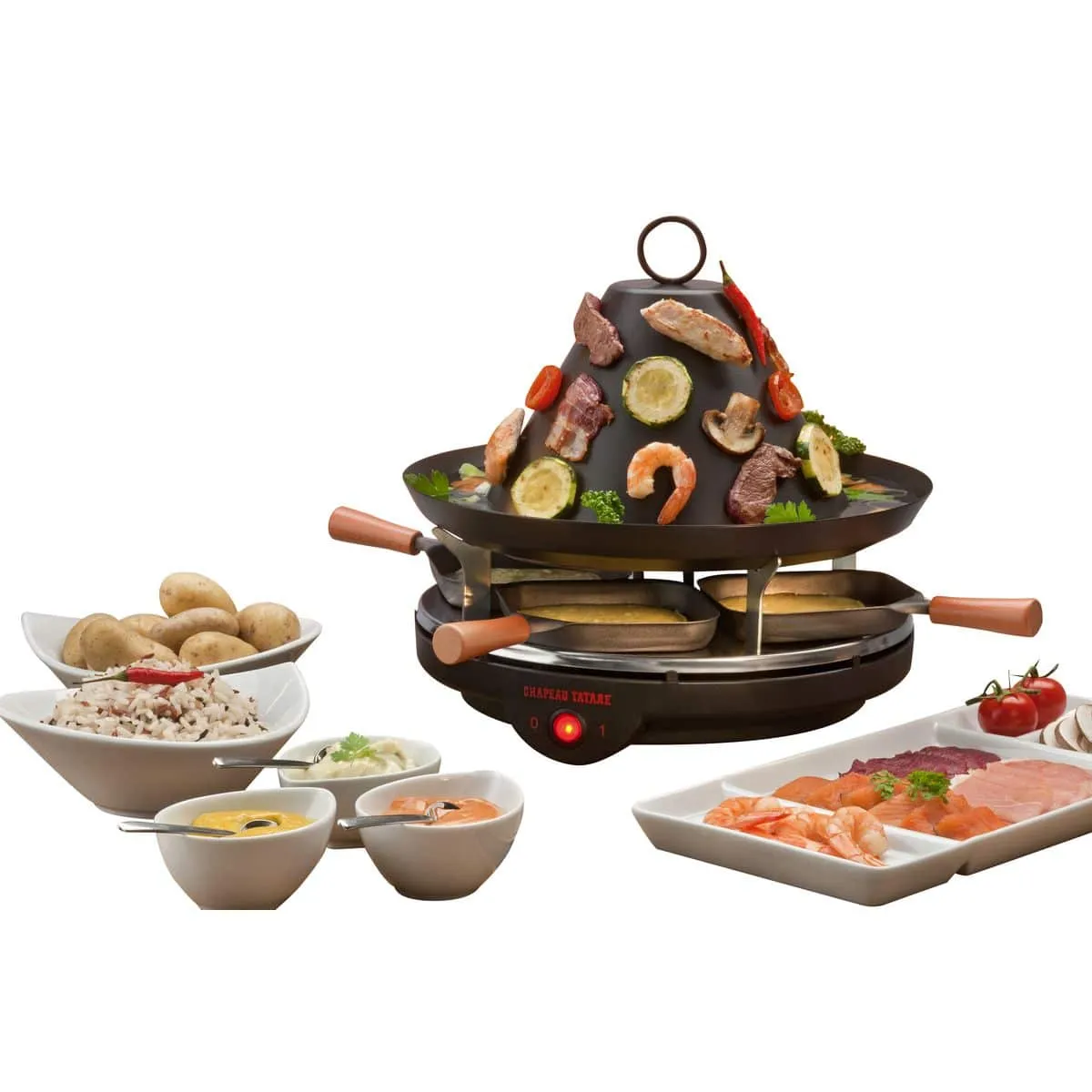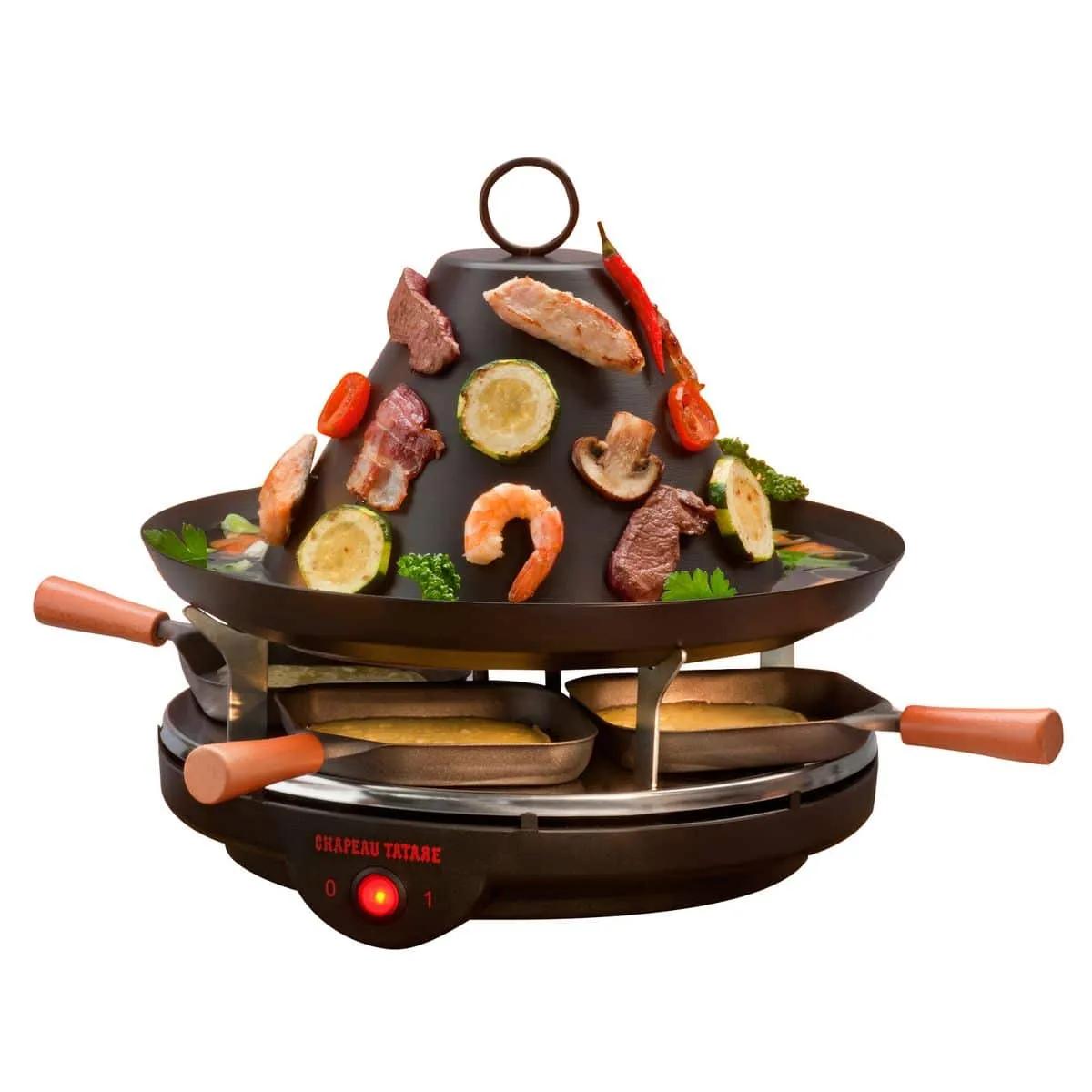 Chapeau tatare TTM, modèle électrique. Diamètre ∅30 cm. Structure en acier avec revêtement antiadhésif. Espace de cuisson pour raclette.