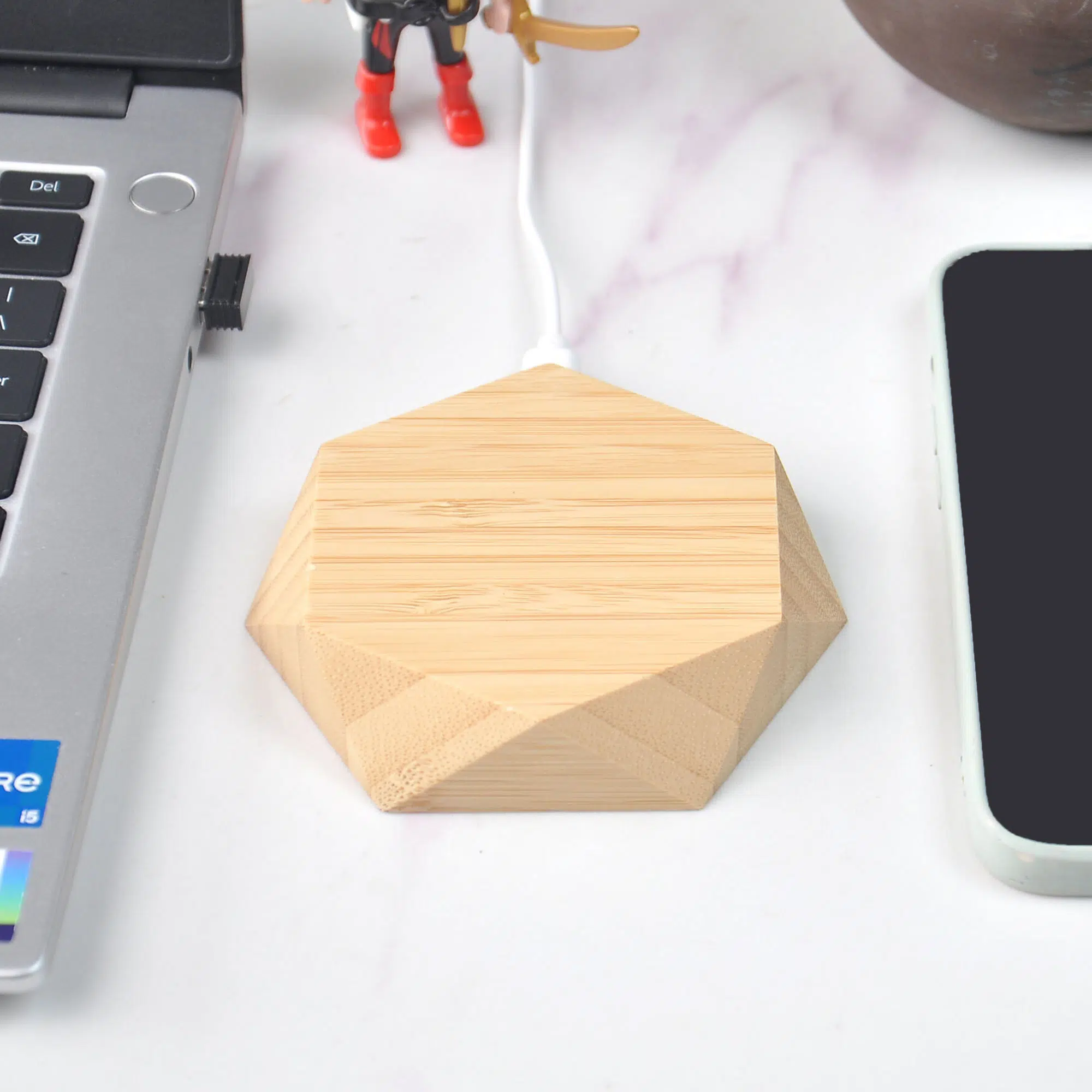 Ce chargeur à induction 15W est conçu entièrement en bambou certifié FSC, combinant design naturel et technologie sans fil moderne. Grâce à son format de 98 x 86 x 21 mm et son poids léger de 0,07 kg, il s’adapte facilement à tous les environnements de travail ou espaces personnels. Ce modèle est compatible avec les appareils équipés de la technologie de charge sans fil rapide.